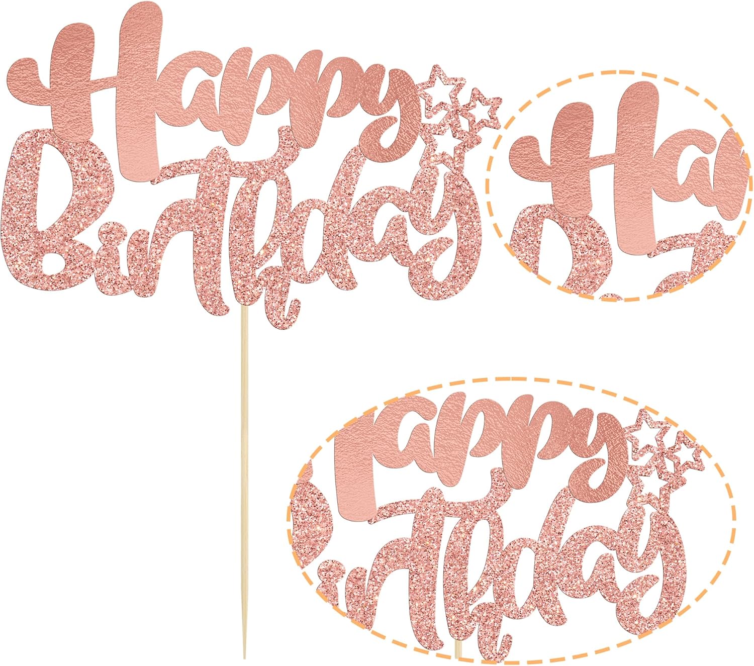 Ephlyn 1Pcs Happy Birthday Cake Topper Glitter Cake Pick for Celebrating Anniversary Theme Party Cake Decorations Supplies Rose Gold
