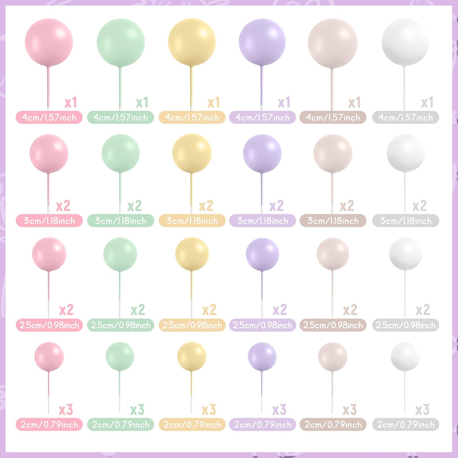 - Package Includes: You will get 48 pcs cake balls decorations in 6 colors. The quantity of each sizes and colors included in each set are as shown in the picture