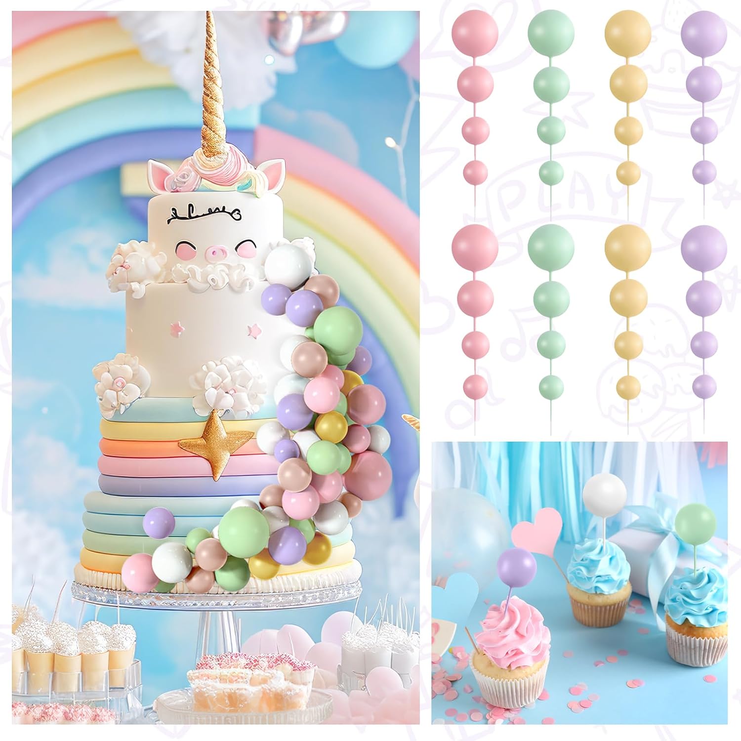 48 Pcs Balls Cake Topper Decorations Balloon Cupcake Toppers Foam Cake Topper Balls Cake Balls Decorations for Birthday Party Wedding Cake Decorating(Pink,Green,Yellow,Purple,Brown,White)