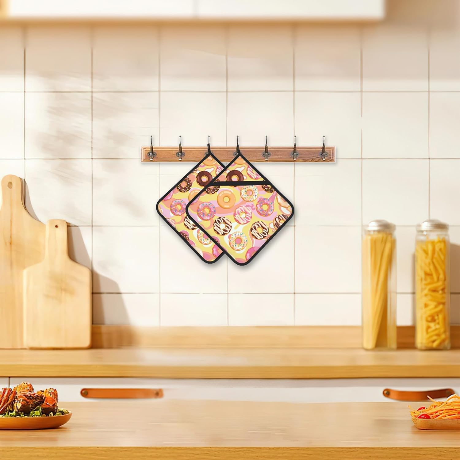 2 Pack Colorful Donuts Pot Holders for Kitchen Heat Resistant, Potholders for Kitchens Washable for Cooking & Baking & Microwave