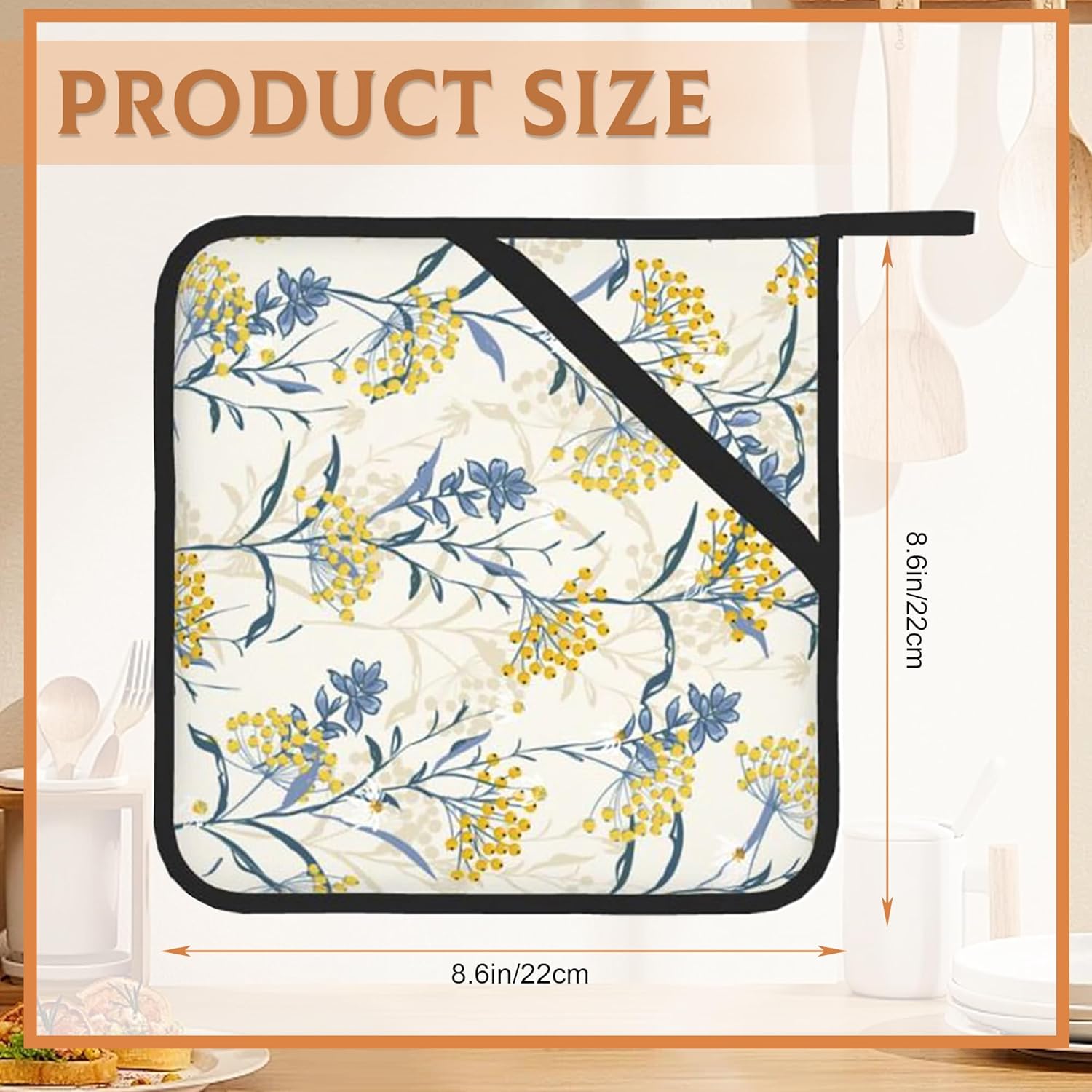 Vintage Floral Plan Pot Holders Set of 2 Heat Resistant Potholders,Yellow Blue Fire Oven Hot Pads for Kitchen Cooking Baking Barbecue
