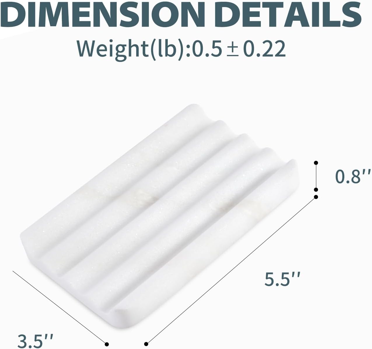 - STURDY AND MODERN: The stone soap dish oval concave design measures 4.7 inches by 2.7 inches and is suitable for most bar soaps on the market. High-quality marble material ensures the shower soap holder is long-lasting and durable, won't lose the luster of the mabrle soap dish surface over time.