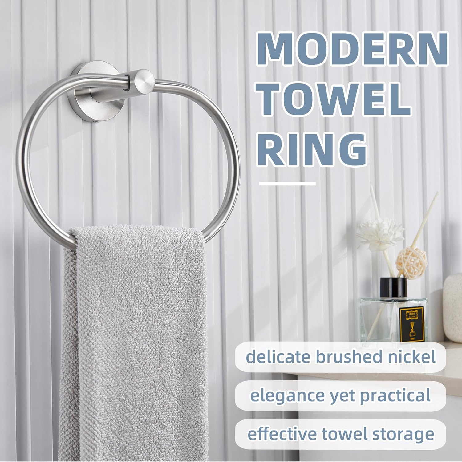 APLusee Oval Towel Ring Brushed Nickel, 304 Stainless Steel Towel Holder for Bathroom Kitchen, Wall Mounted