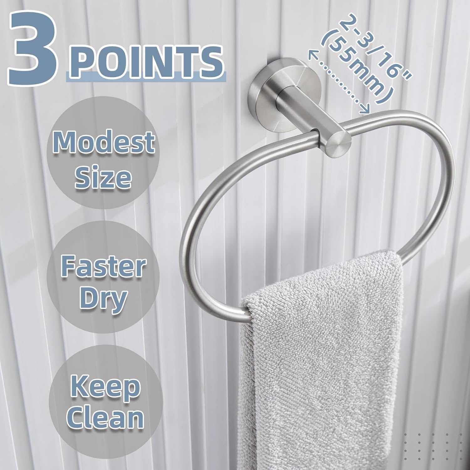 - SPACIOUS OVAL RING: 7”(177 mm) hanging area, wide enough to spread out hand towel. Suitable for installing by the sink to store towels, easy to use