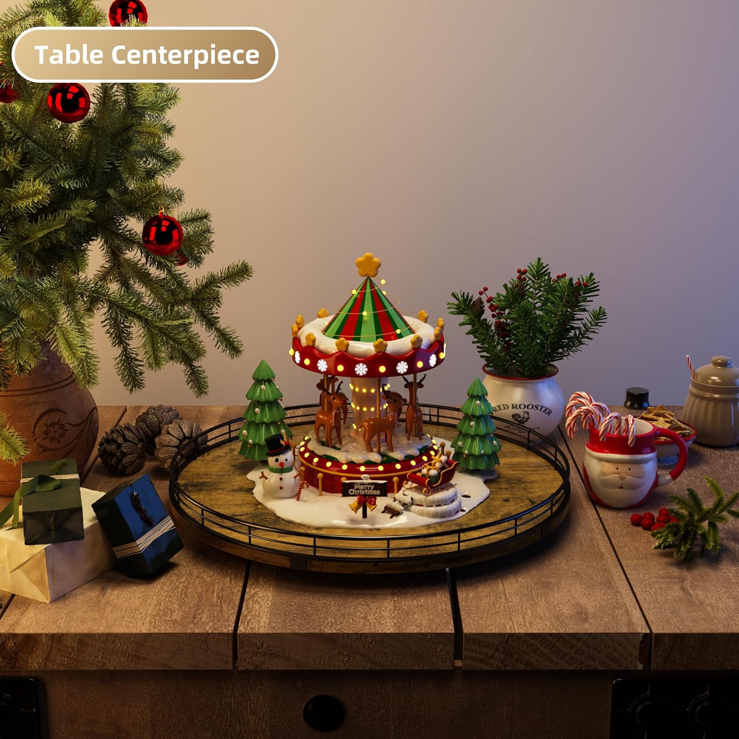 Lazy Susan Turntable Organizer for Table Top, 16’’ Round Wooden Lazy Susan for Cabinet Kitchen Countertop Pantry Dining Coffee Table for Condiments Spices, Rustic Bathroom Vanity Tray for Soap Candle