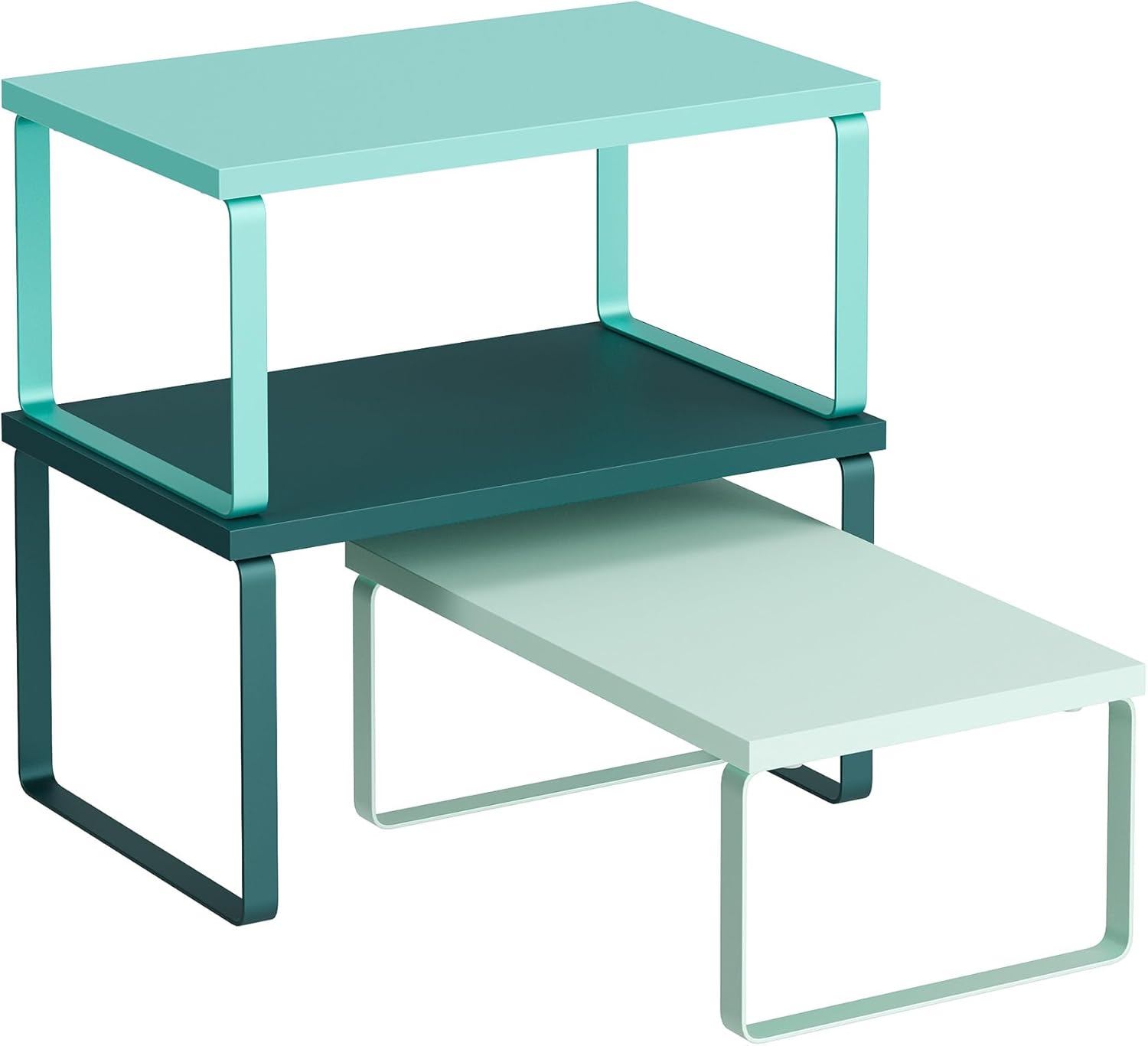 SONGMICS Cabinet Organizer Shelf, Set of 3 Kitchen Counter Shelves, Kitchen Storage, Spice Rack, Stackable, Expandable, Green UKCS220C01