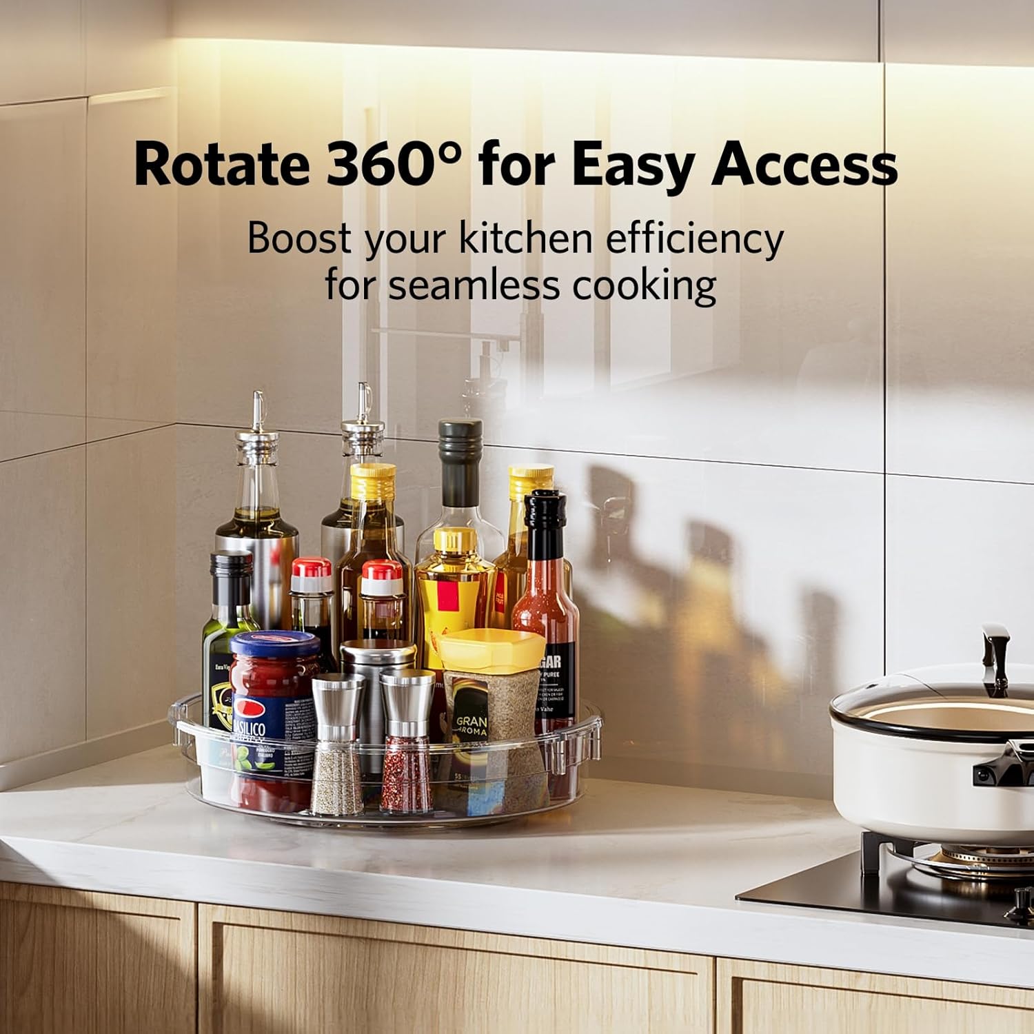 - SMOOTH 360°ROTATION: No more rummaging around with our lazy susan turntable for cabinet. Simply rotate this lazy susan organizer for cabinet with a gentle spin to locate exactly what you need, saving you time and boosting your efficiency