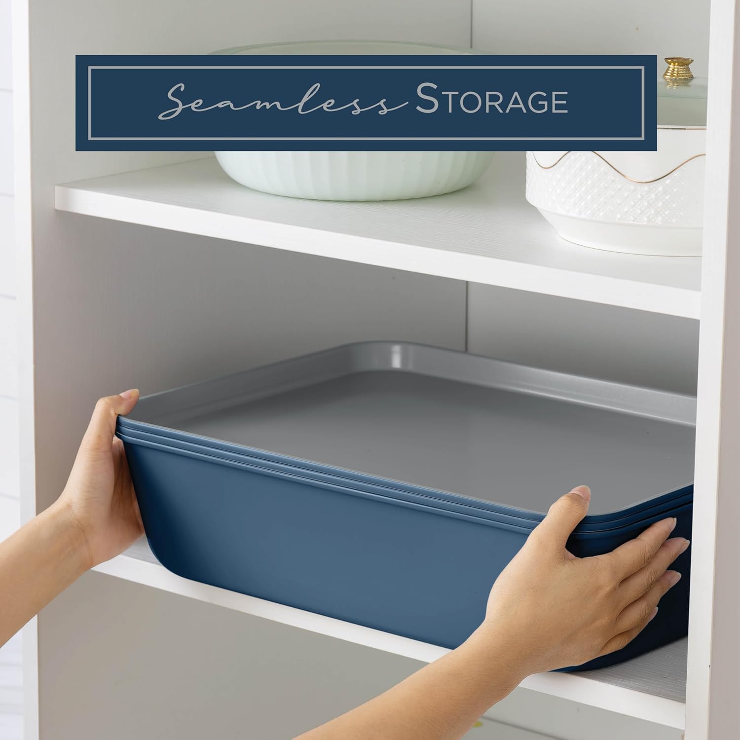 Country Kitchen Nonstick Stackable Bakeware Set - Deluxe Heavy Duty, Durable, Easy Release Baking Set, Denim, 13 Pcs