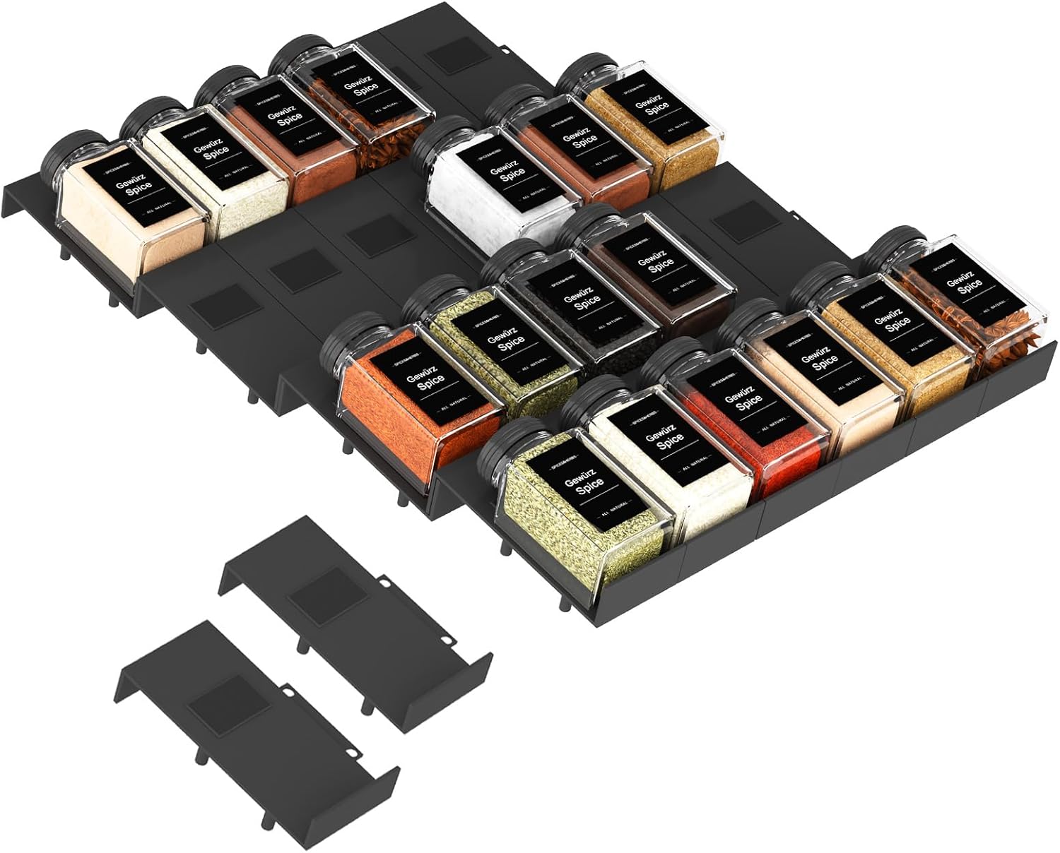 - Easy Assembly: No Tools Required! Our drawer spice rack is easy to install and use. Simply place the inserts in your drawer and adjust it to the desired size. Keep your countertop neat and tidy.