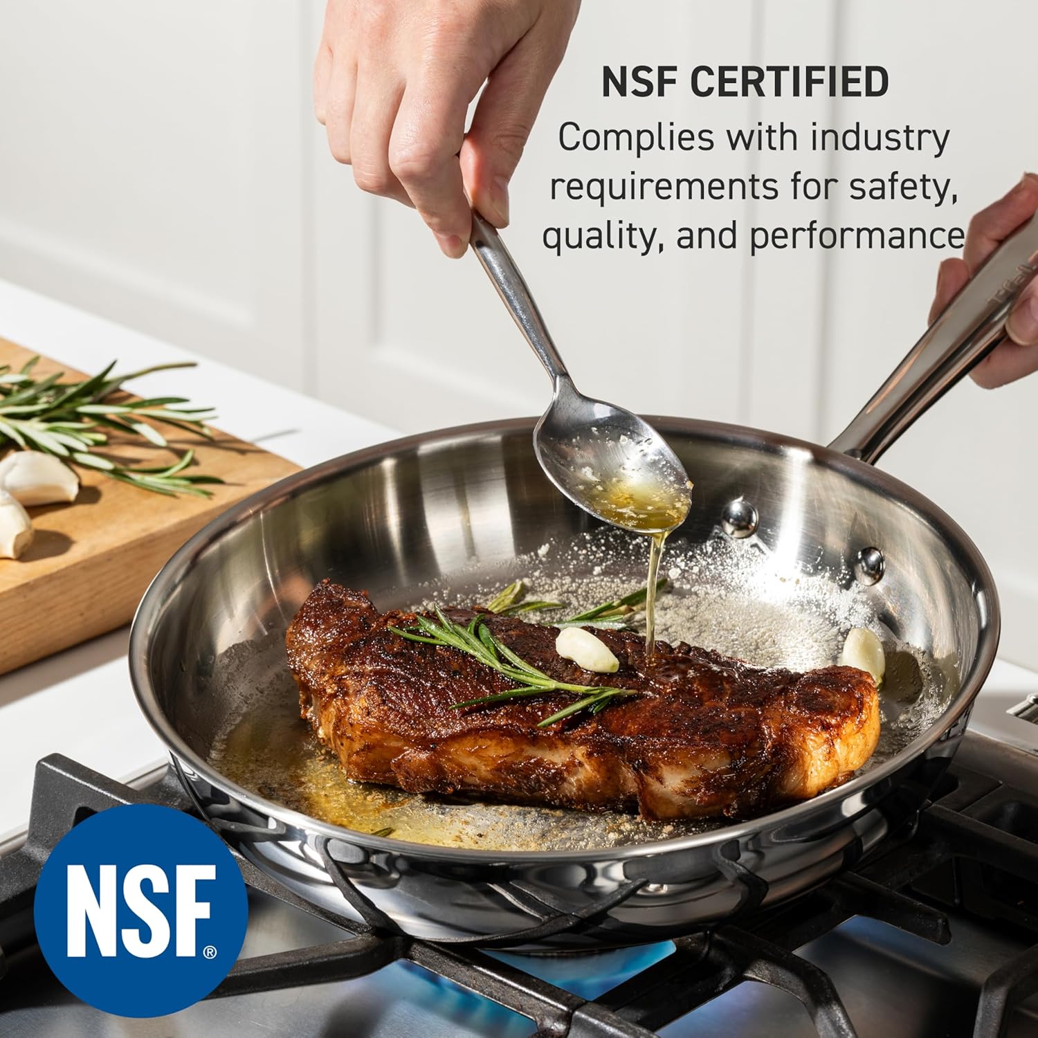 - ๐๐ฎ๐ข๐ฅ๐ญ ๐ญ๐จ ๐๐๐ฌ๐ญ: The heavy-duty tri-ply stainless steel construction ensures durability for years to come. Certified by NSF, this cookware meets the highest professional standards for quality and durability.