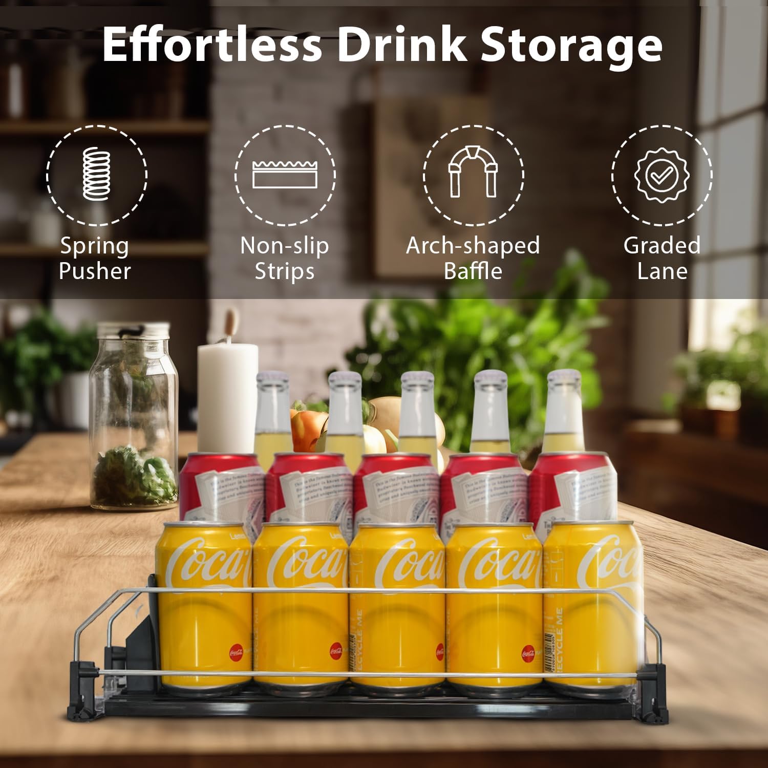 - Large Capacity Storage : This can holders for fridge fits up to 15 cans or bottles (12oz to 20oz), including water bottles and soda. Ideal for maximizing can storage in your kitchen, cooler, or shelves—not suitable for mini sizes.