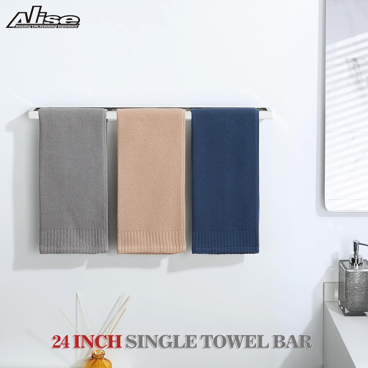 Alise Bath Towel Bar,Wall Mount Towel Holder Towel Rack Towel Hanger for Bathroom Lavatory,24 Inch SUS304 Stainless Steel Towel Rail,Polished Chrome GJF060-C