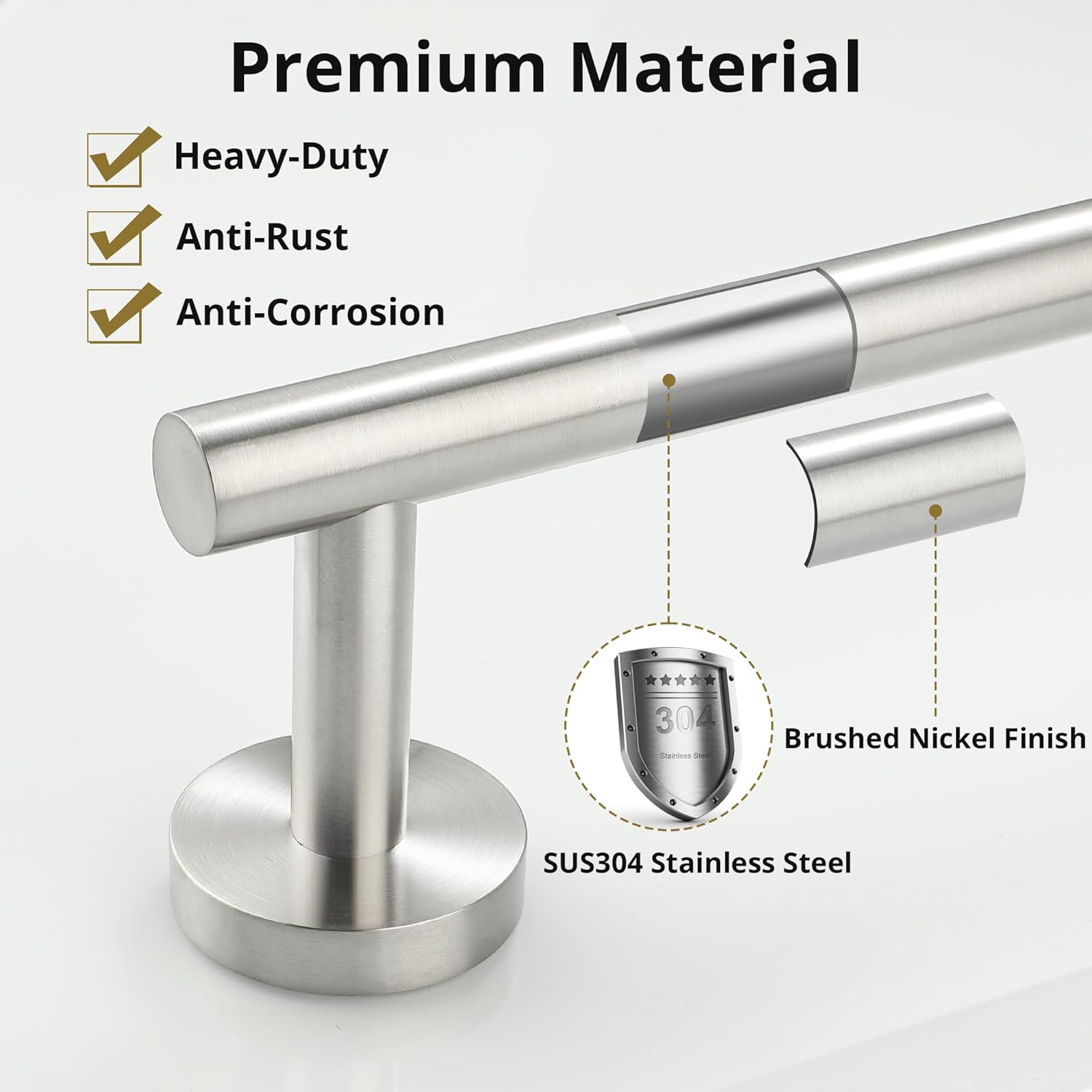 - Durable & Rustproof Material: Our brushed nickel towel bar is made of quality 304 stainless steel, featuring excellent strength and durability. Brushed stainless steel finish is built to resist daily scratches and tarnishing.
