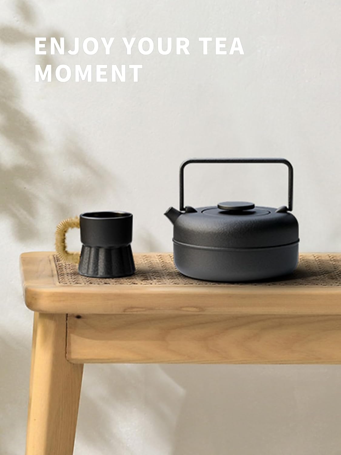 - π΅ Small Cast Iron Tea Kettle - Teapot FULL-LOAD CAPACITY: 27 oz / 800 ml, RECOMMENDED BOILING CAPACITY: 24 oz / 700 ml. The cast iron teapot allows gradual and even heating. It will help infuse the greatest amount of flavor from the tea leaves into the water. Cast iron teapot could break down the elements of Fe2+, which is beneficial to your body. Japanese cast iron teapot also has long heat preservation.