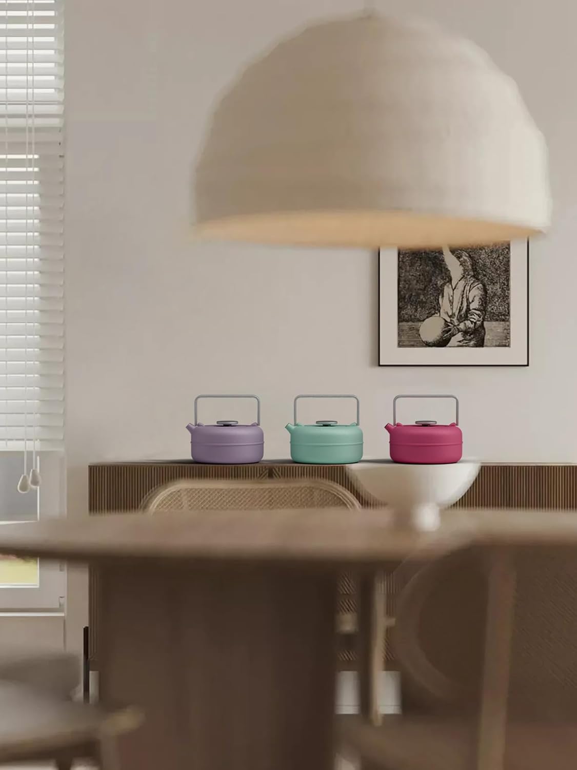 Toptier Teapot with Removable Infuser, Cast Iron Tea Kettle Stovetop Safe, Solid Geometry Cylinder Design Tea Pot Coated with Enameled Interior for 27 Ounce (800 ml), Babyblue