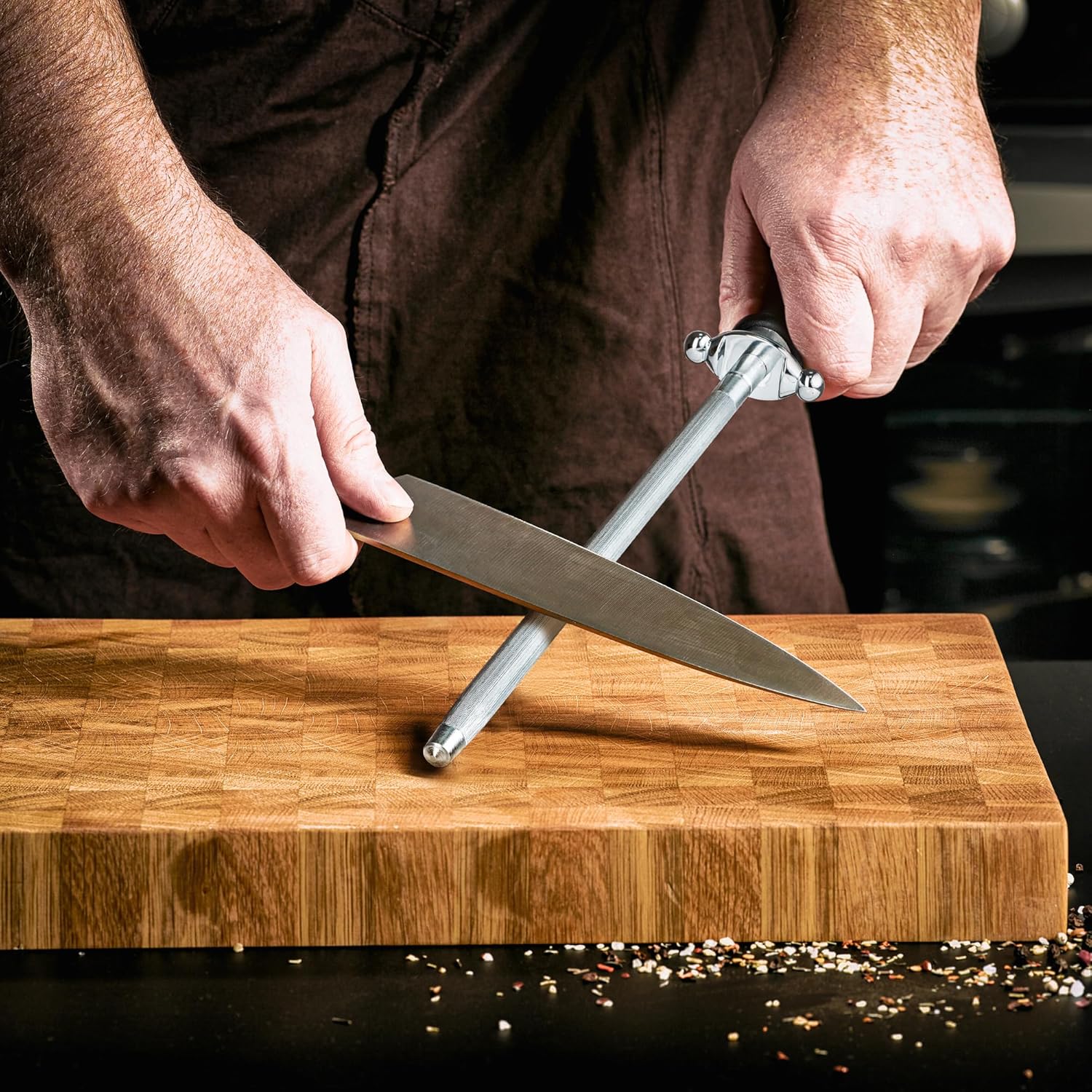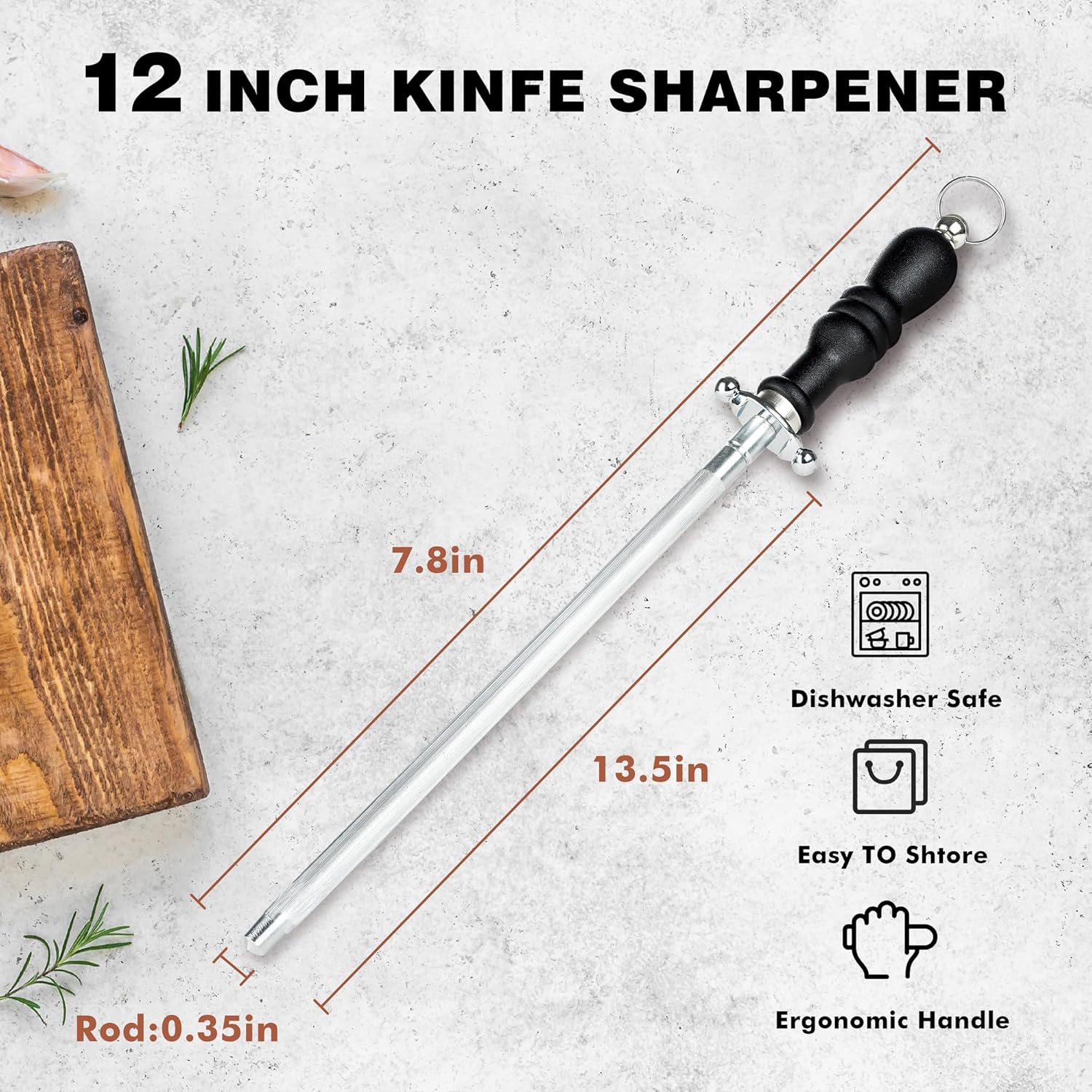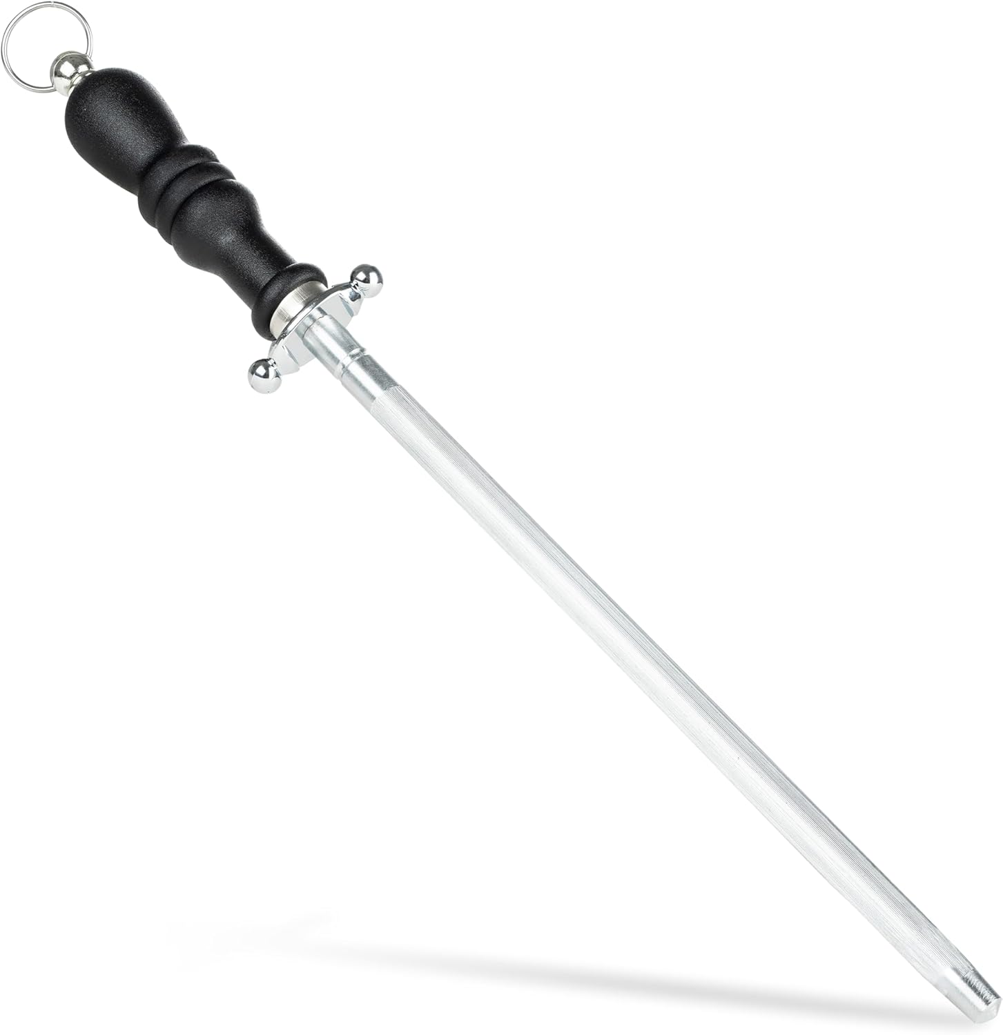 - Premium Construction: Constructed from durable carbon steel and coated with nickel-chrome, our sharpening rod combines longevity with functionality. The finely ground surface of the rod ensures that your knives are sharpened without damaging the cutting edges, preserving the life of your blades.