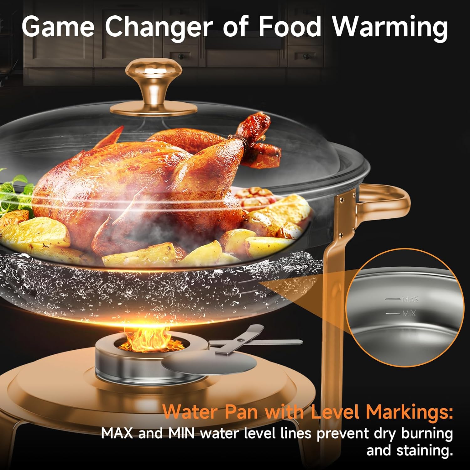 - [Superior Food Insulation]: KScocina round chafing dish buffet sets are crafted from high-quality stainless steel, providing exceptional food warming capabilities and durability. Utilizing advanced water vapor circulation, these chafing dishes keep your food warm and fresh for any occasion. Available in three stunning colors: gold, silver, and rose gold.