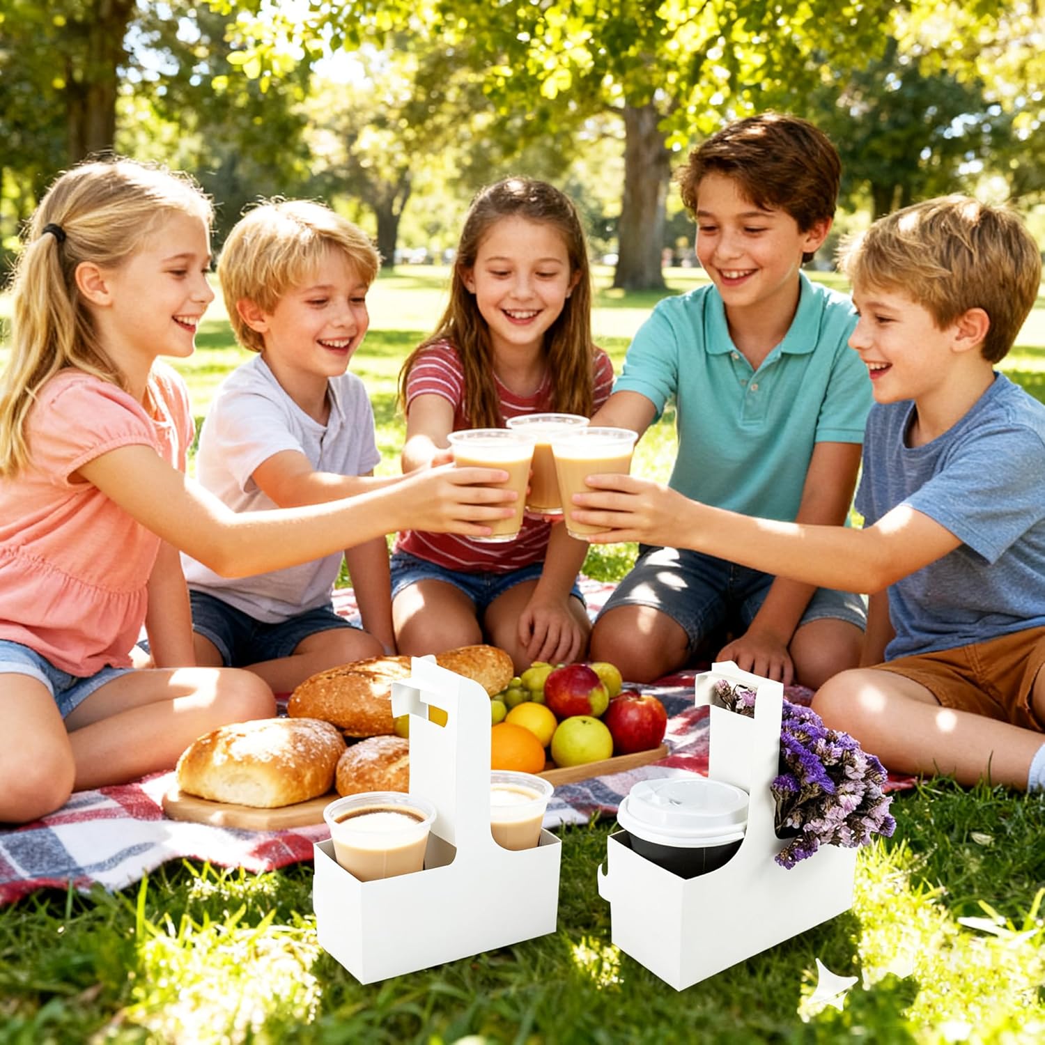 - Convenient and Easy to Use: With a foldable design, this cardboard drink carriers offer ultimate convenience and ease of use. It can be quickly set up for on-demand use and easily folds for compact storage. Two cup holders can easily form a new cup holder that can hold four 8-20 ounce beverage cups, perfect for busy commuters and food delivery professionals, and it simplifies the transportation of beverages