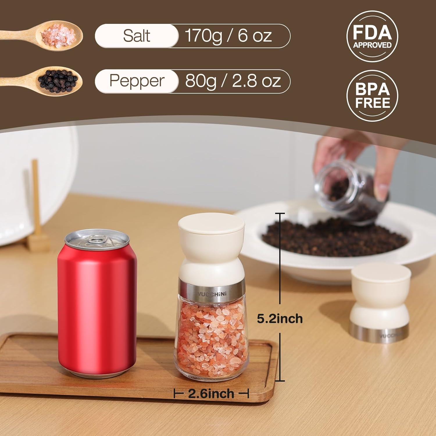 Vucchini Salt and Pepper Grinder Set with Adjustable Coarseness Ceramic Pepper Mill Manual Effortless Salt Grinder Spice Grinder for Home, Kitchen, Beige