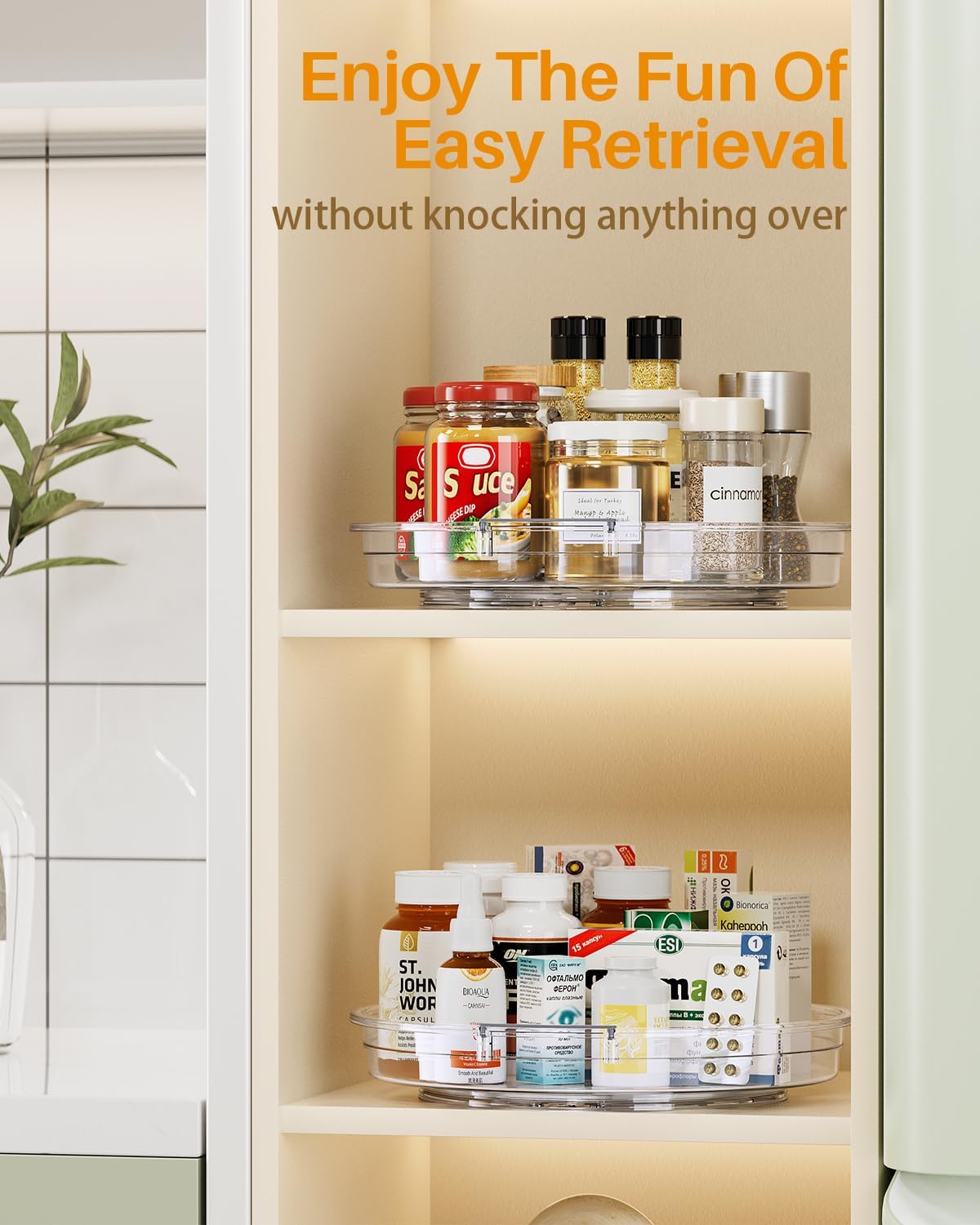 - 360Β° Rotating Organizer: Imagine easily reaching even the deepest items with ease! Our 10.6 in Lazy Susan turntable for cabinet simplifies access, there is no worry about knocking anything over. Perfectly for narrow cabinets and make your life more convenient