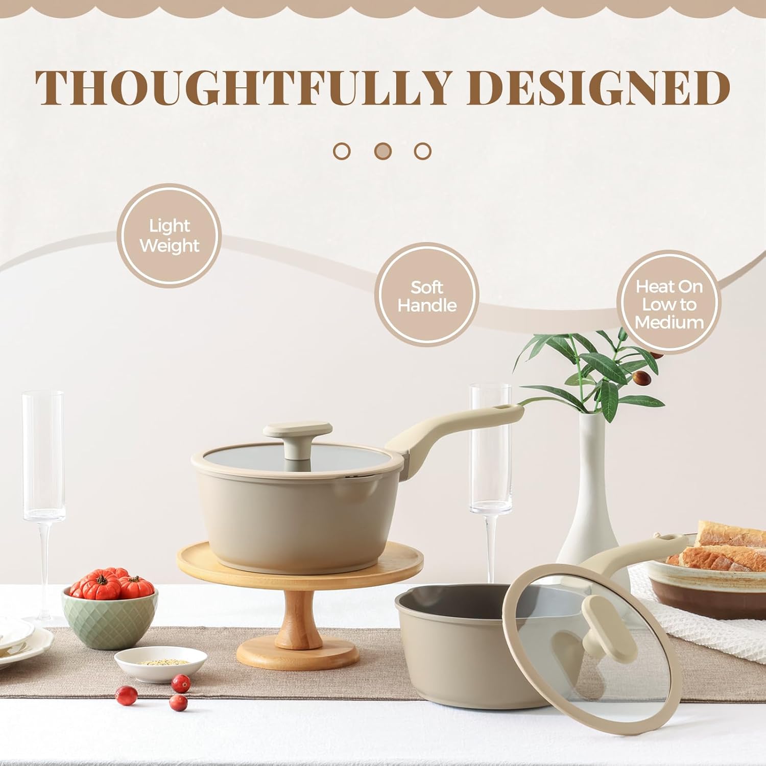 PRICUSIS Nonstick Saucepan Set with Lids, 2QT and 2.7QT Sauce Pan Set, Non Toxic Sauce Pots with Pour Spouts for Multipurpose Use, PFOA Free, Induction Compatible Apricot