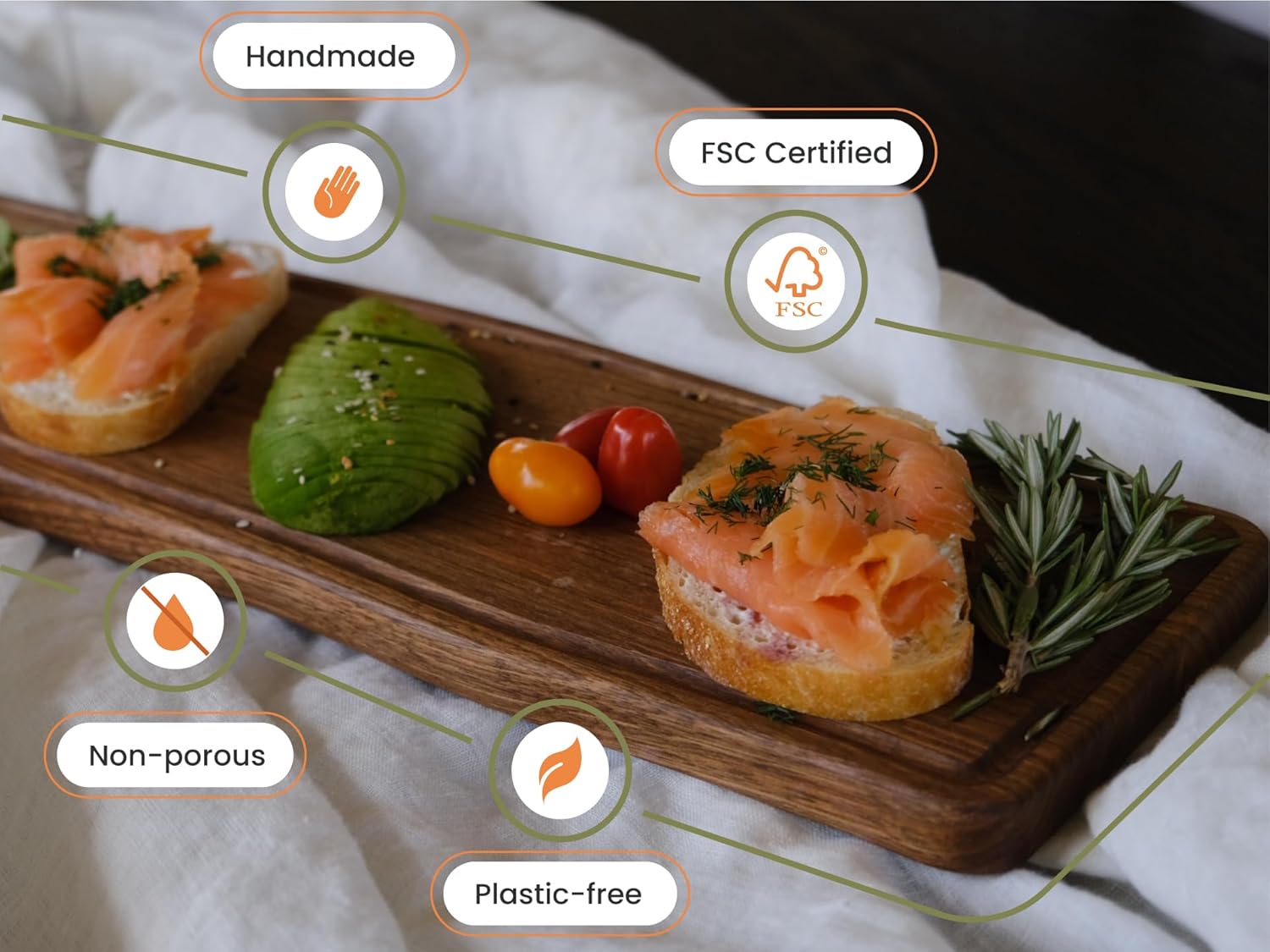 - Premium Walnut Wood: Immerse yourself in the richness of walnut wood with our long serving board. The deep, luxurious tones and intricate grain patterns showcase the quality and craftsmanship that goes into each piece, making it a visual delight for your culinary presentations.