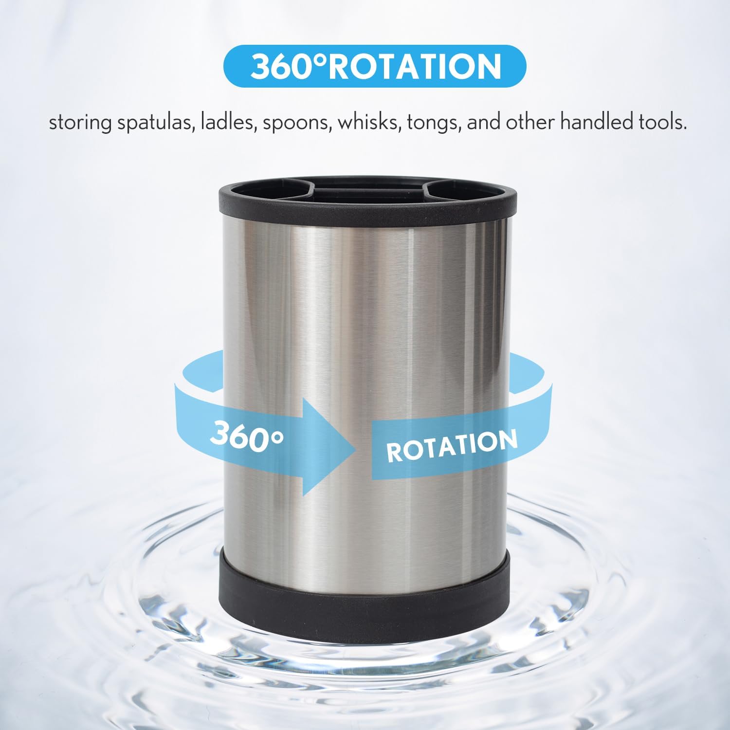 - 【360ºDegree Rotation】:Our Utensil holder is equipped with a 360 degree rotation function,you can easy to find the tableware when you need, reducing the hassle of flipping through cabinets.The base of the utensil caddy with 4 non-slip rubber pieces to secure utensils and prevent scratching the kitchen surface.Note: This packaging does not include any utensils.