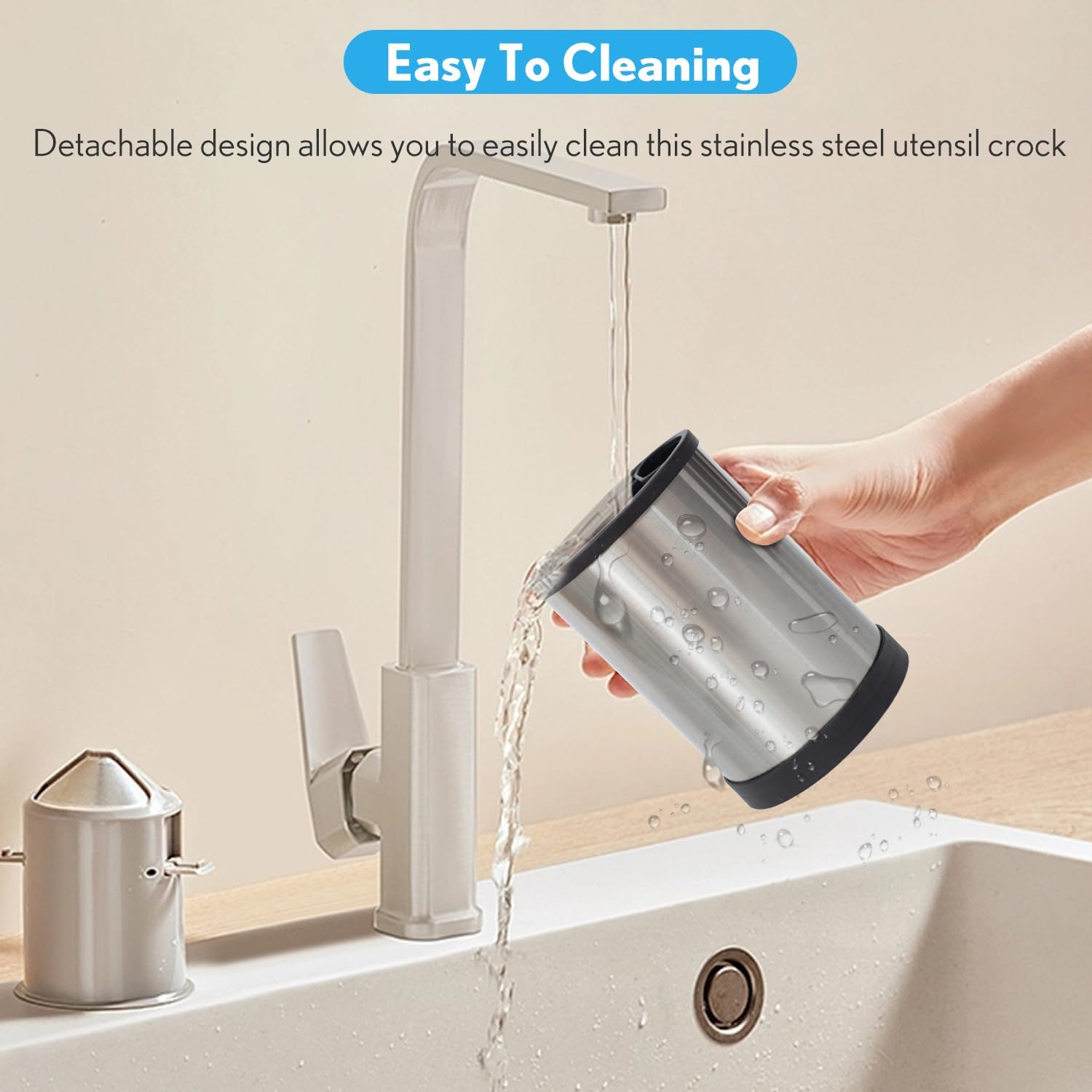 - 【Quickly Dry & Easy To Clean】:The utensil caddy is equipped with drainage holes, which can quickly drain water, keep the utensils dry, and maintain the cleanliness of the kitchen countertop.bottom water drying design,the water can be poured out directly from the bottom when you clean.