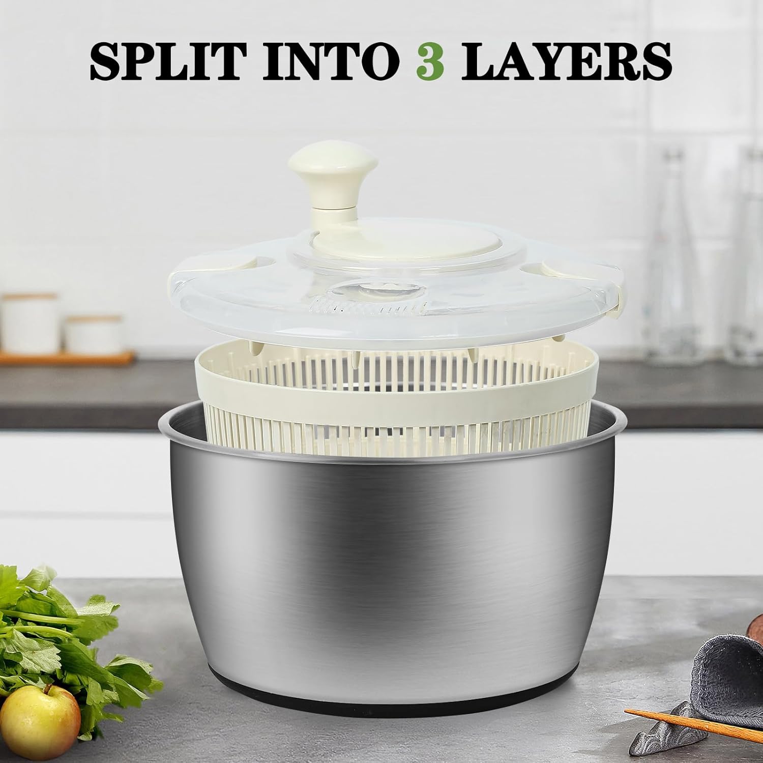 5Qt Stainless steel Salad Spinner, lettuce spinners,salad spinner BPA-Free small,Vegetable Dryer,Vegetable Washer,colander for kitchen,salad dryer spinner,fruit cleaner spinner