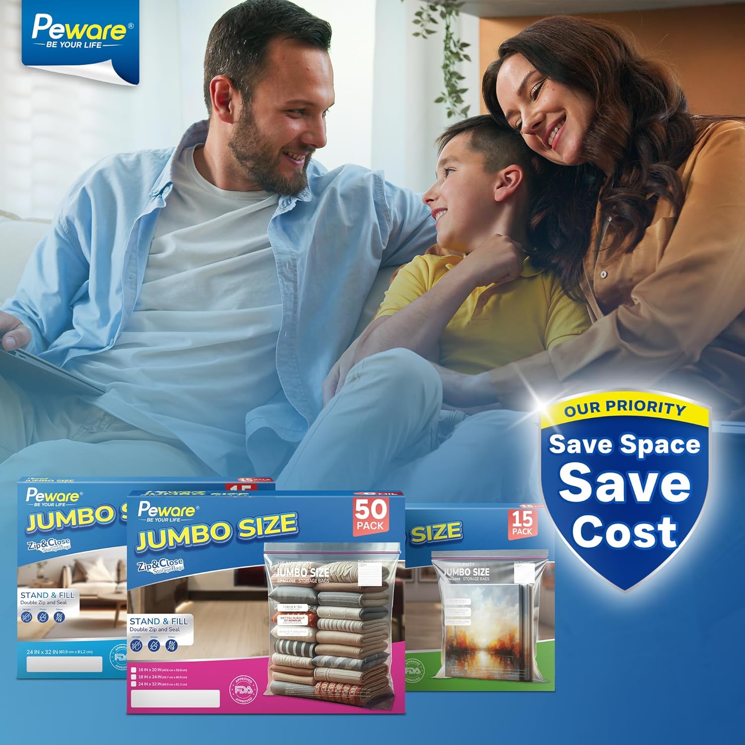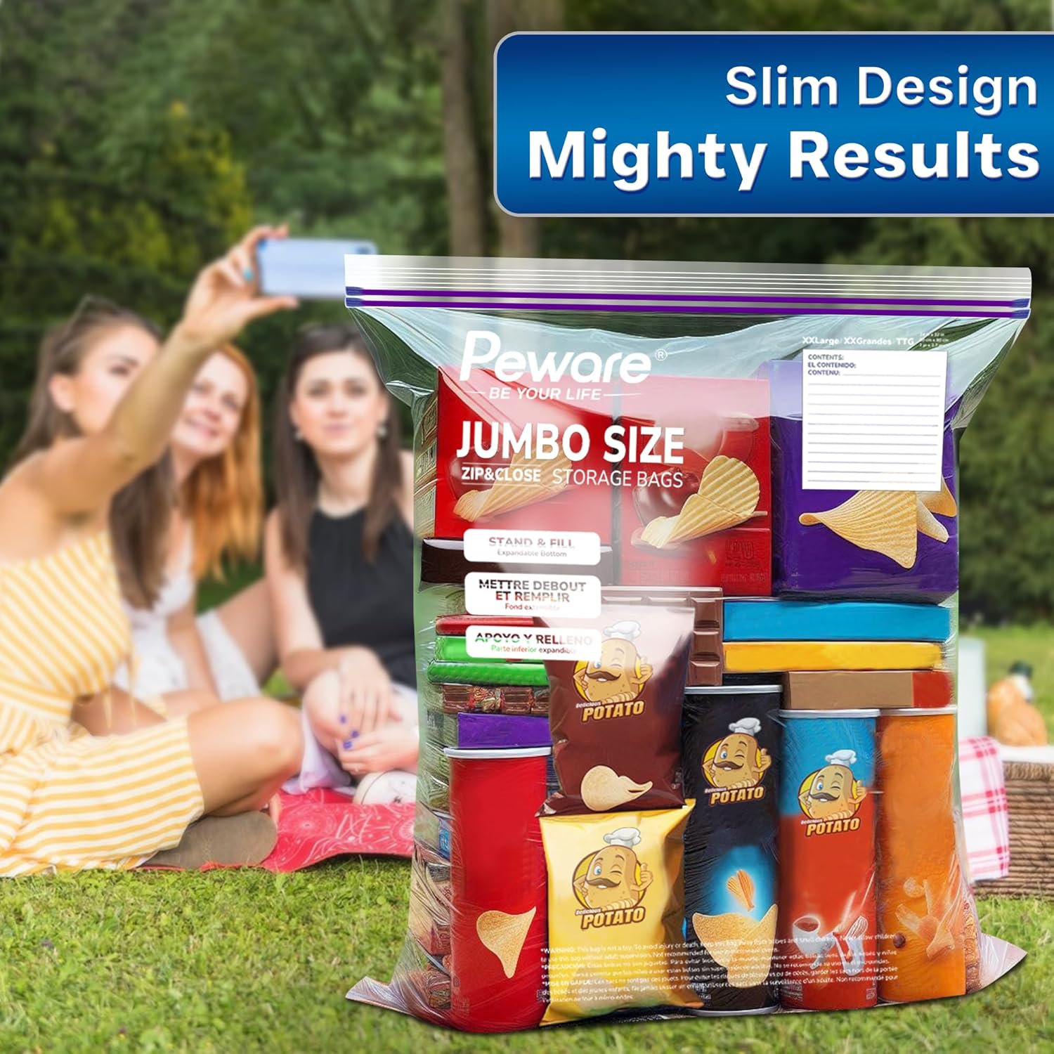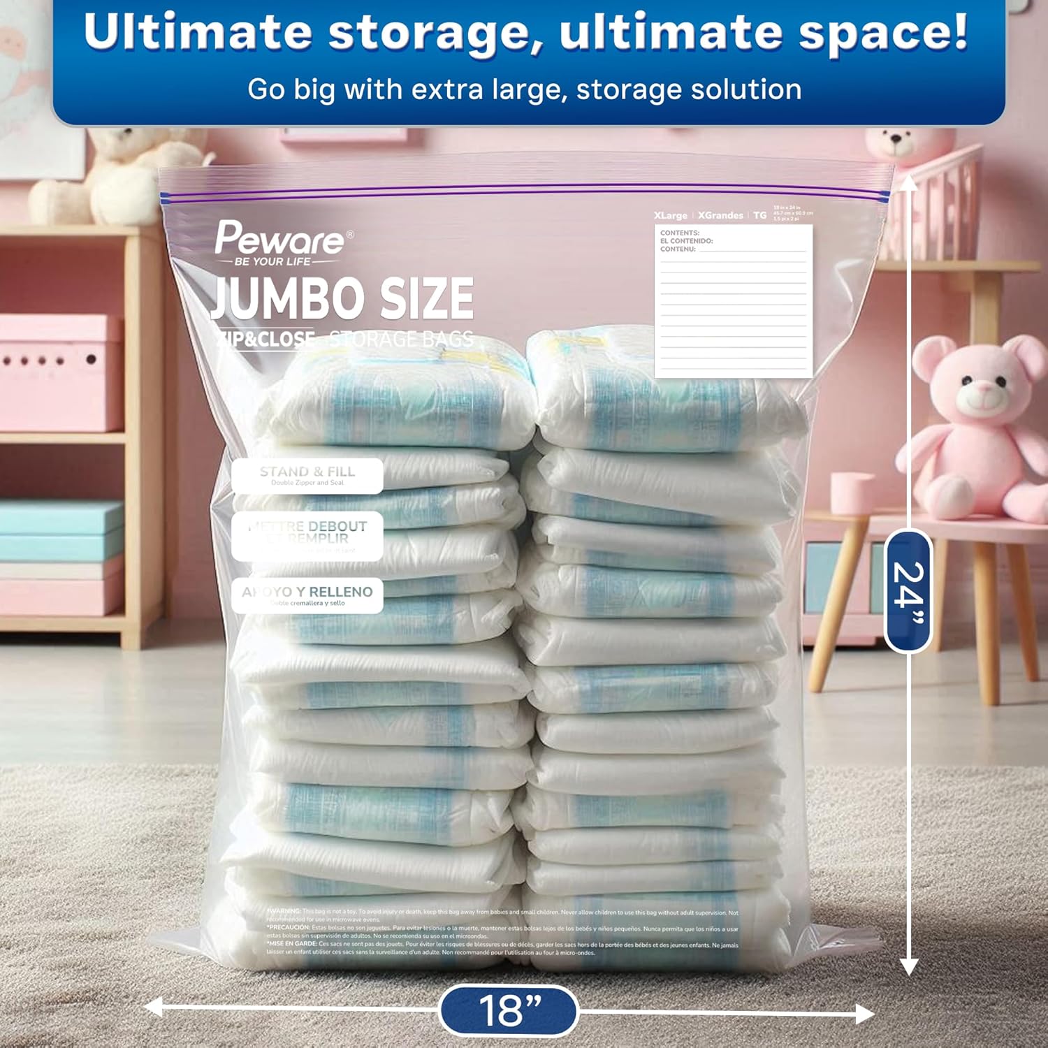 Large Storage Bags, 18"x24" Jumbo Plastic Bag, BPA Free, 5 Gallon XL Zipper Lock Baggies for Clothes Pillow Travel Moving - 50 Jumbo Bags