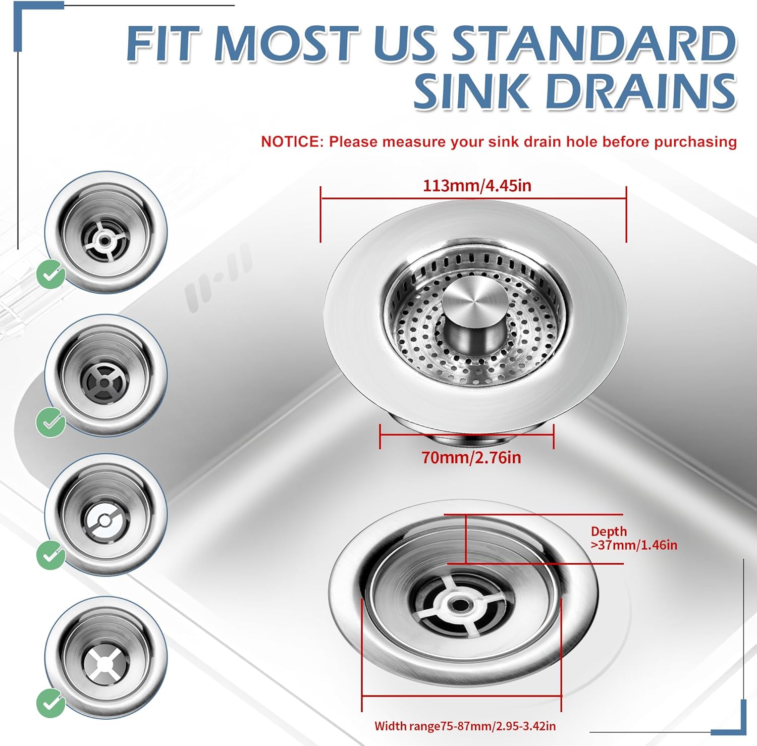 - [UNIVERSAL] Kitchen Sink Stopper is Universal for the Kitchen Drain with Opening 2.95-3.42 inches and Depth Greater than 1.46 inches,Ensuring Easy Replacement and Compatibility.Please Measure the Hole Size before Purchasing