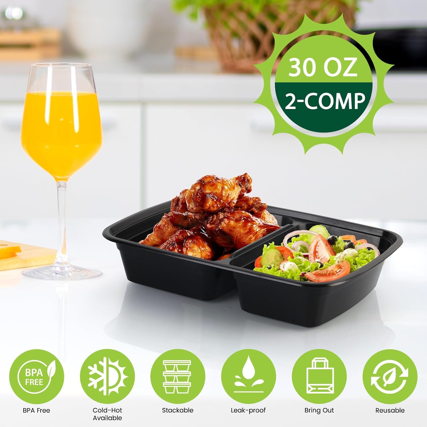 Meal Prep Containers 50 Pack - 2 Compartment Food Containers with Lids, To Go Food Containers BPA-Free, carry out Container With Lids Microwave, Dishwasher, Freezer Safe 30 oz