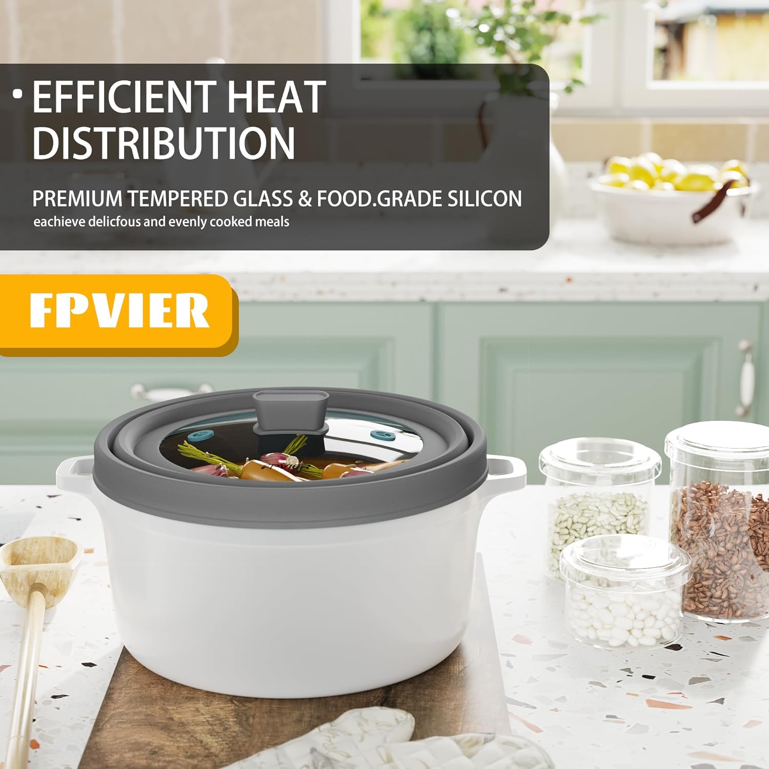 - 【SILICONE HANDLE】 The silicone handle on the top is anti-scalding and safe, so you can open it without spending a lot of time waiting for it to cool down without having to wait for it to cool