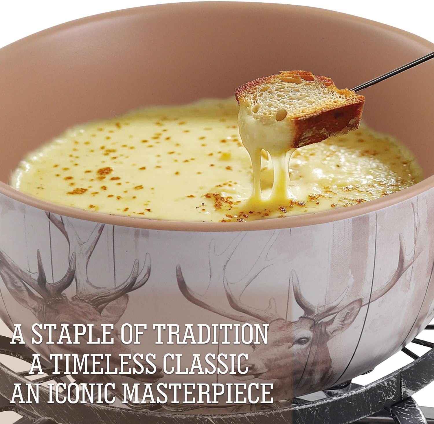 - IDEAL FONDUE with FAMILY - Perfect for gatherings, date nights, or family celebrations, this fondue pot combines style and functionality to create a delightful culinary adventure. Enjoy perfectly melted cheese, chocolate, broth, or oil fondue with your favorite fixings. Perfect for sharing, this set comes with six color-coded fondue forks so you know which is yours.