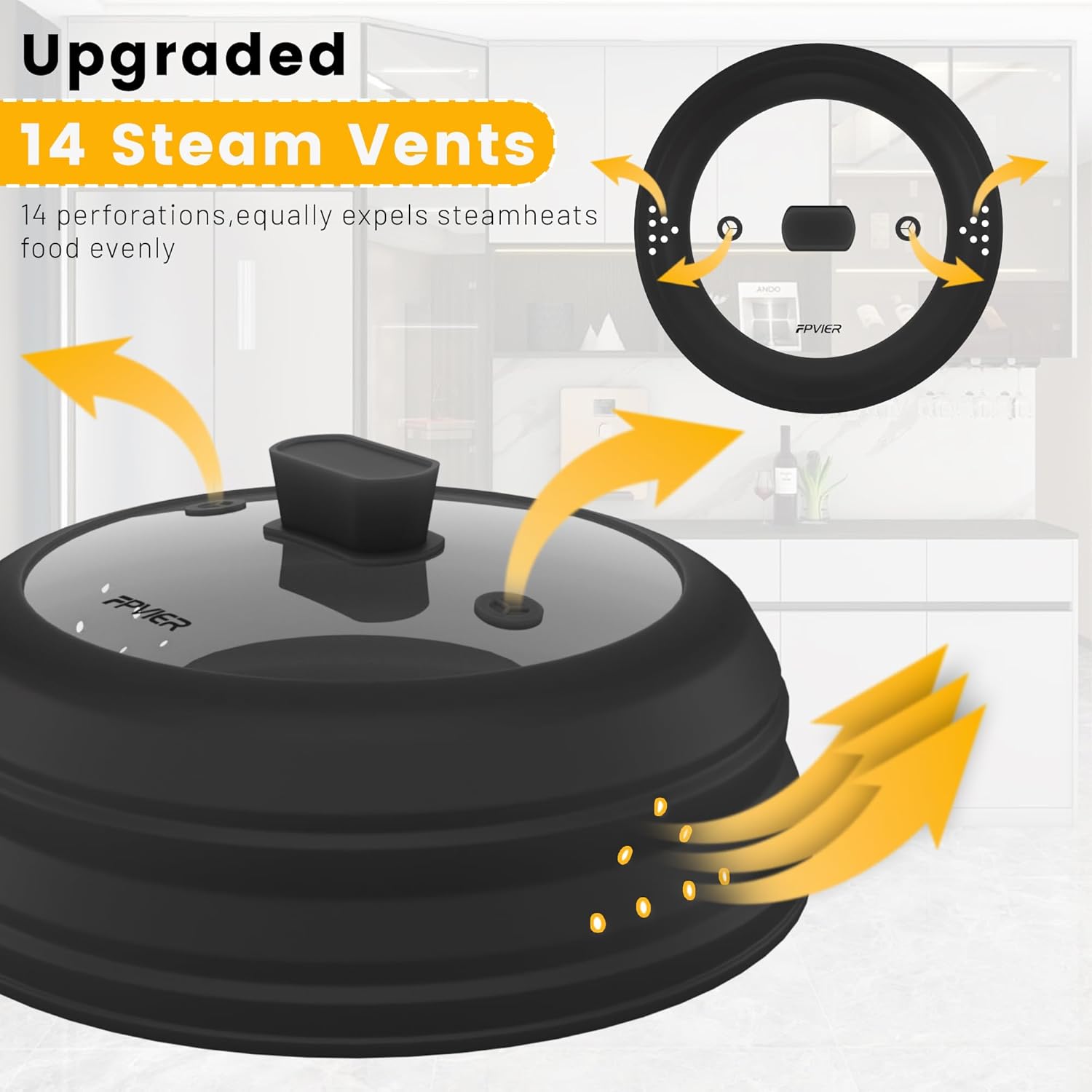 - 【Upgraded 16 Steam Vents】 Compared to the regular one, our upgraded microwave food cover has 14 extra side steam vents. Your food will be no more wet with this upgraded collapsible microwave splatter cover.