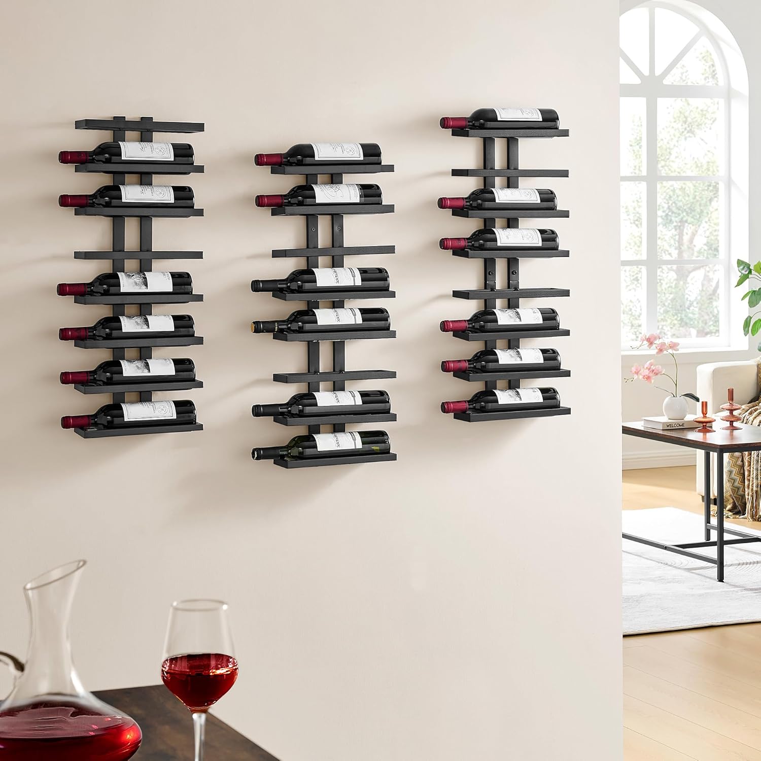 Hoctieon 3-Set 8 Tier Wall Mount Wine Rack (24 Tiers), Wall Racks for Wine Bottles Display and Storage, Hanging Bottle Organizer for Living Room, Dining Room, Wine Cellar, Bar, Black