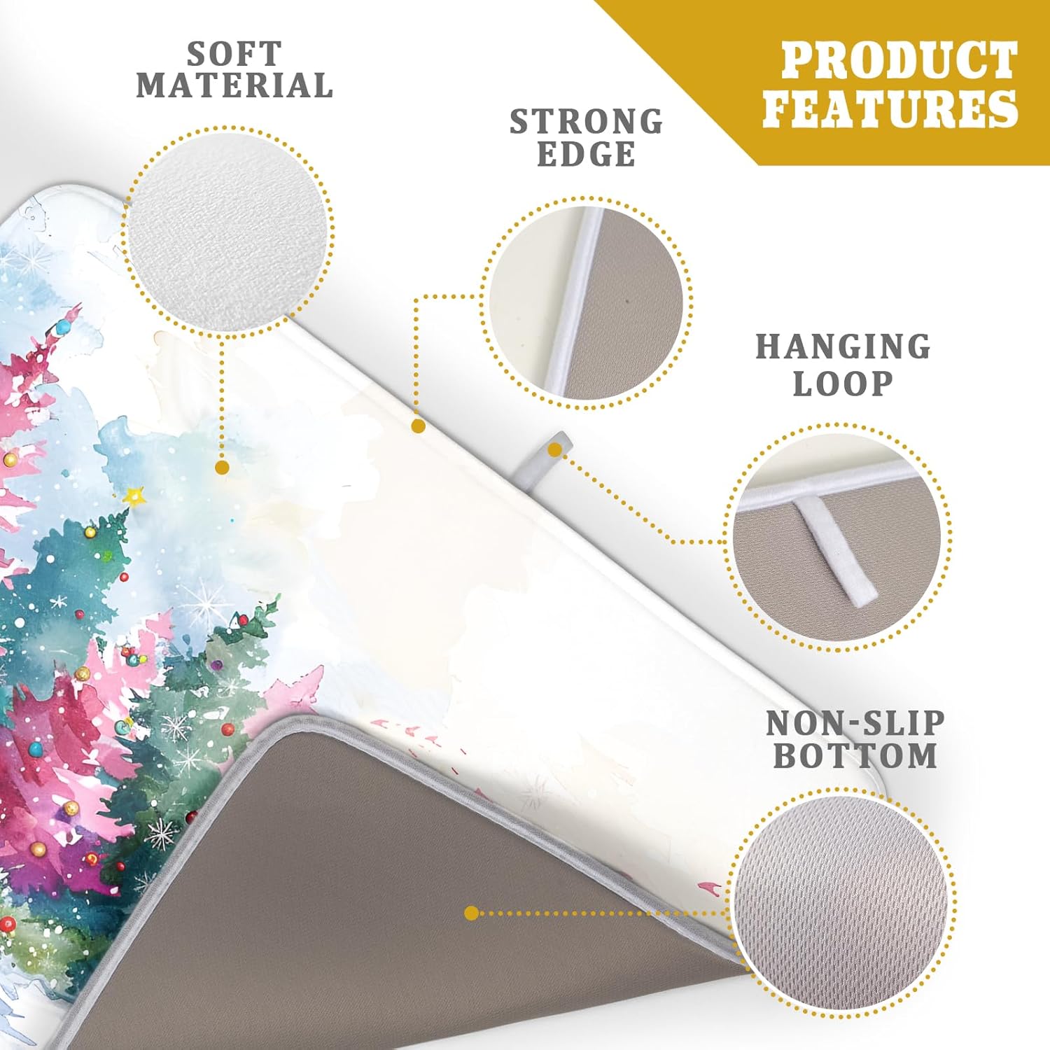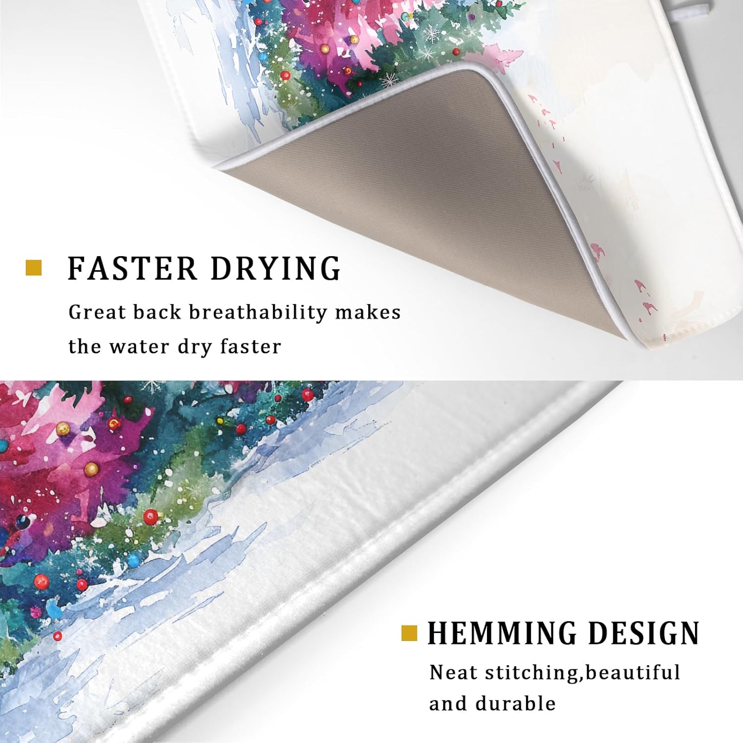 Decorative Christmas Dish Drying Mats Pink Green Xmas Tree Painting Rack Drainer Mats for Coffee Bar 18 X 24 Inch