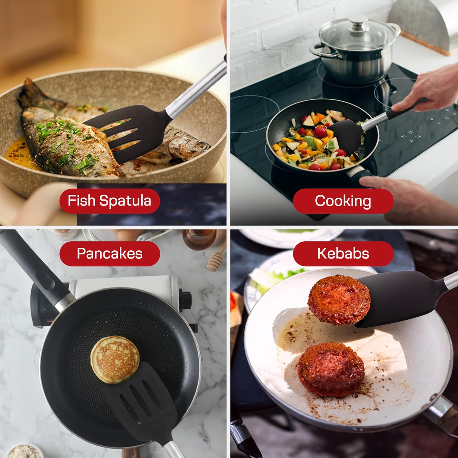 - ♦️[Perfect for Every Cook ]➤ Whether you're a seasoned chef or a passionate home cook, our spatula for non stick frying pan is a must-have addition to your kitchen arsenal. It's ideal for everyday cooking, special occasions, and everything in between, ensuring enduring quality in every dish