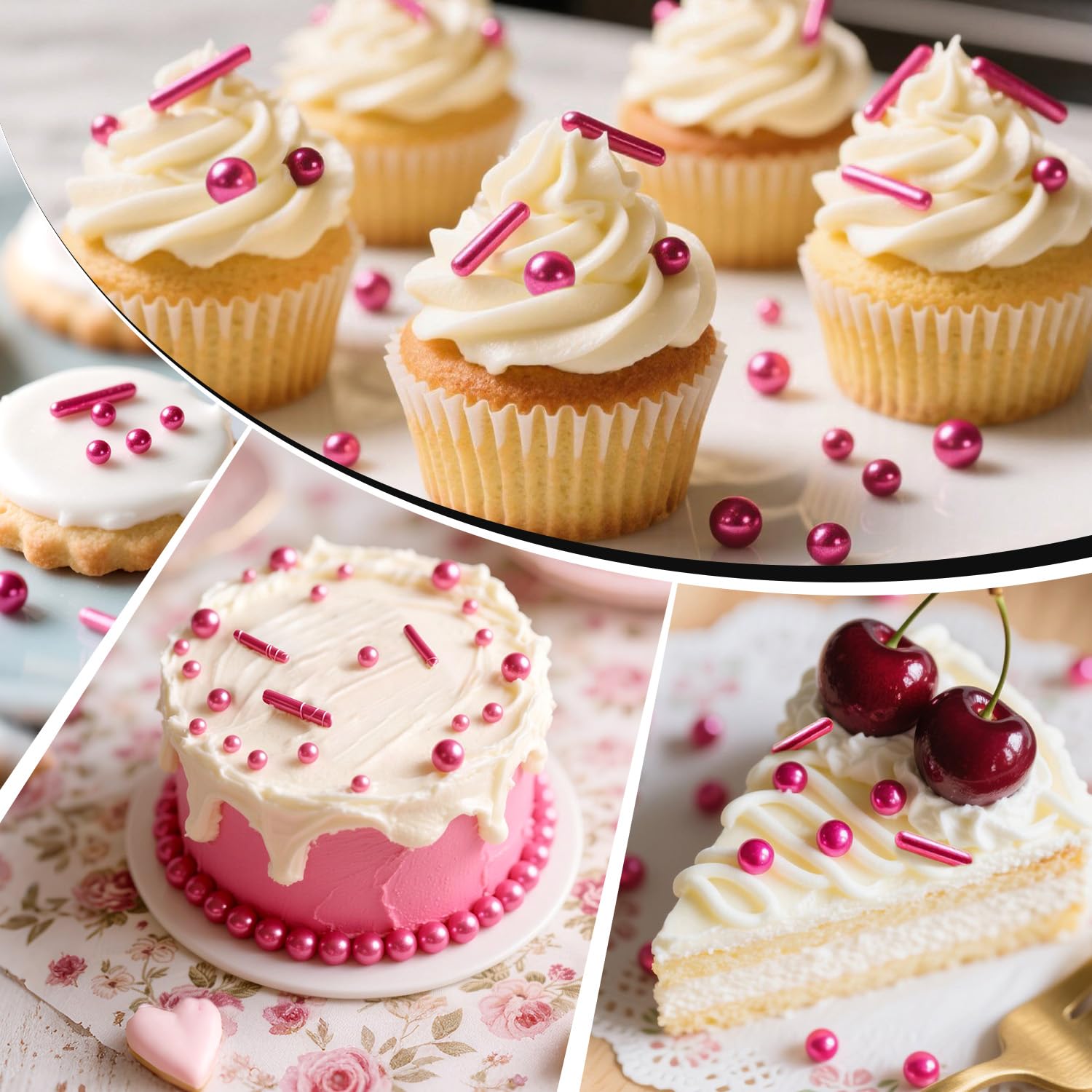 - These Rose Pearl Rods Sprinkles can heighten the visual allure of desserts without altering their taste. They can make cakes, cookies, cupcakes, donuts, waffles, ice cream more appealing.