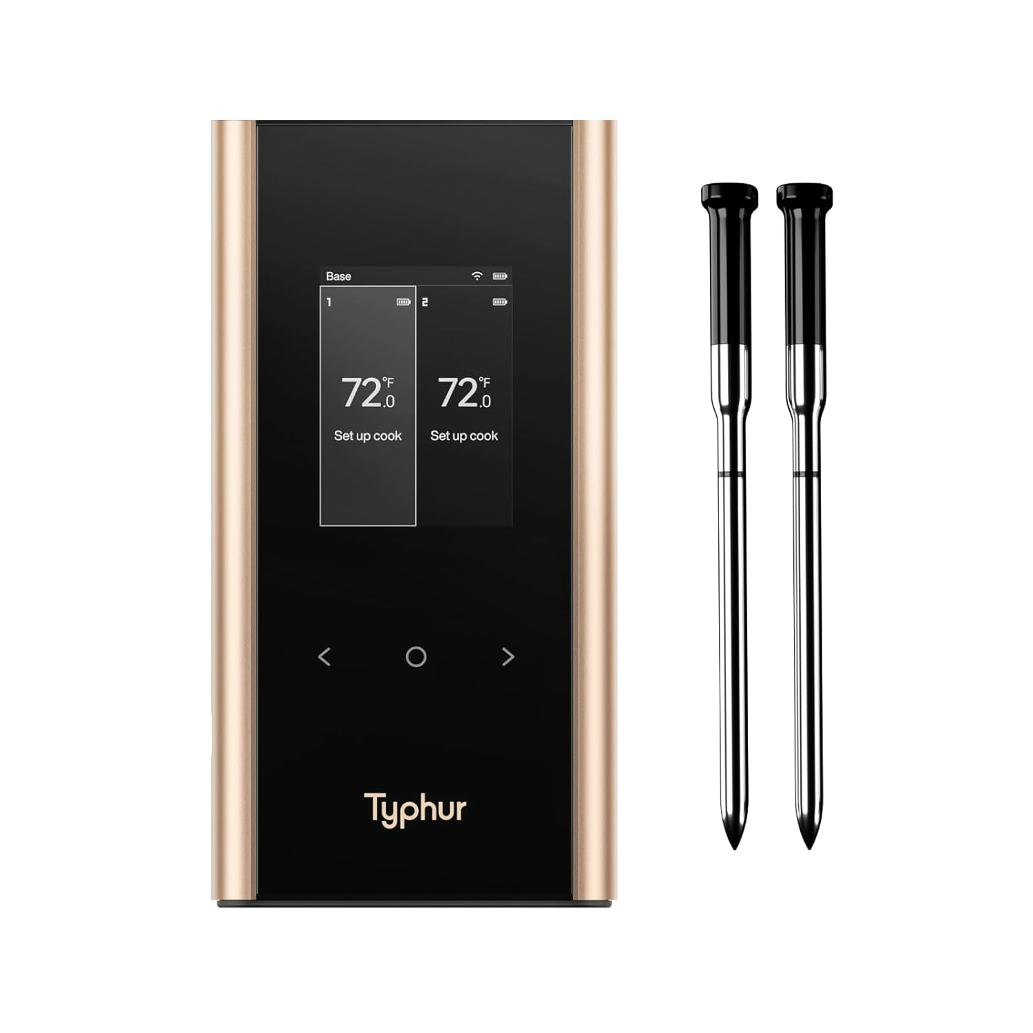 - 【A Perfect Gift with Practicality & Elegance】Combining an elegant design with professional-grade functionality, the Typhur Sync Gold wifi meat thermometer makes a standout gift for BBQ enthusiasts, home chefs, and food lovers who value both style and performance.