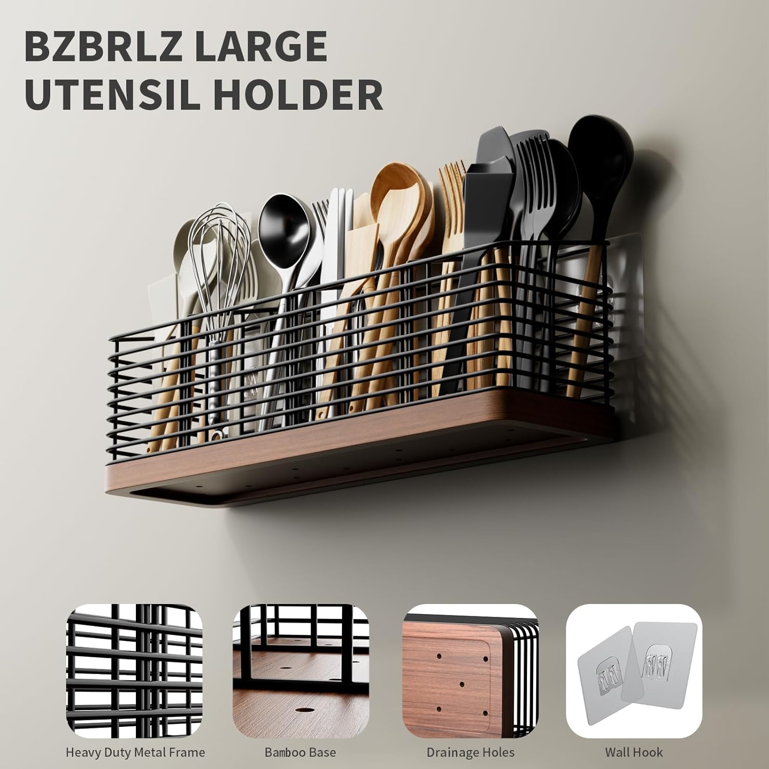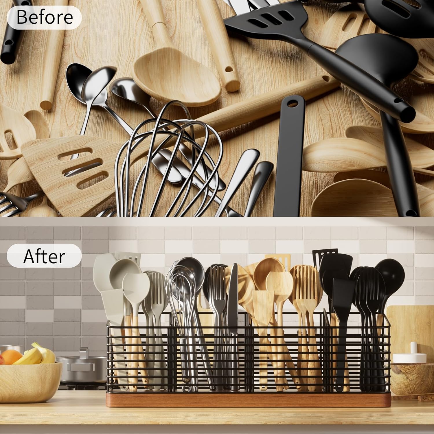 - 【Great Gift Idea】Our Utensil Rack, blending seamlessly with various kitchen decor styles, be it rustic or contemporary. Elevate your kitchen countertop with our kitchen utensil organizer, adding a touch of elegance.