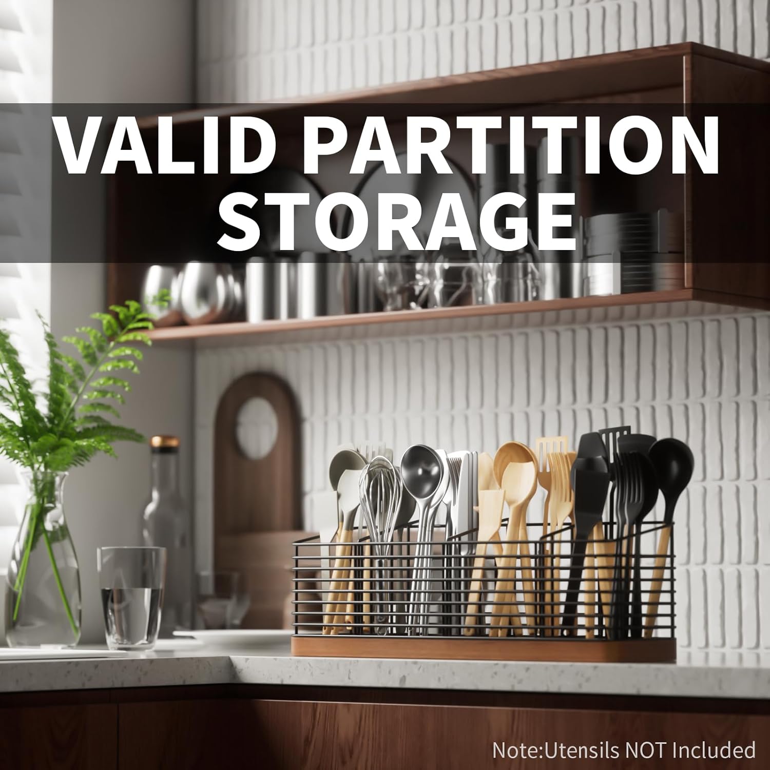 - 【Movable Partition Design】The utensil organizer has four compartments. All three partitions can be drawn out. You can design the number and order of the compartments yourself, or you can pull out all the partitions to make it one big compartment. The design makes storage space more larger. You have a variety of options.