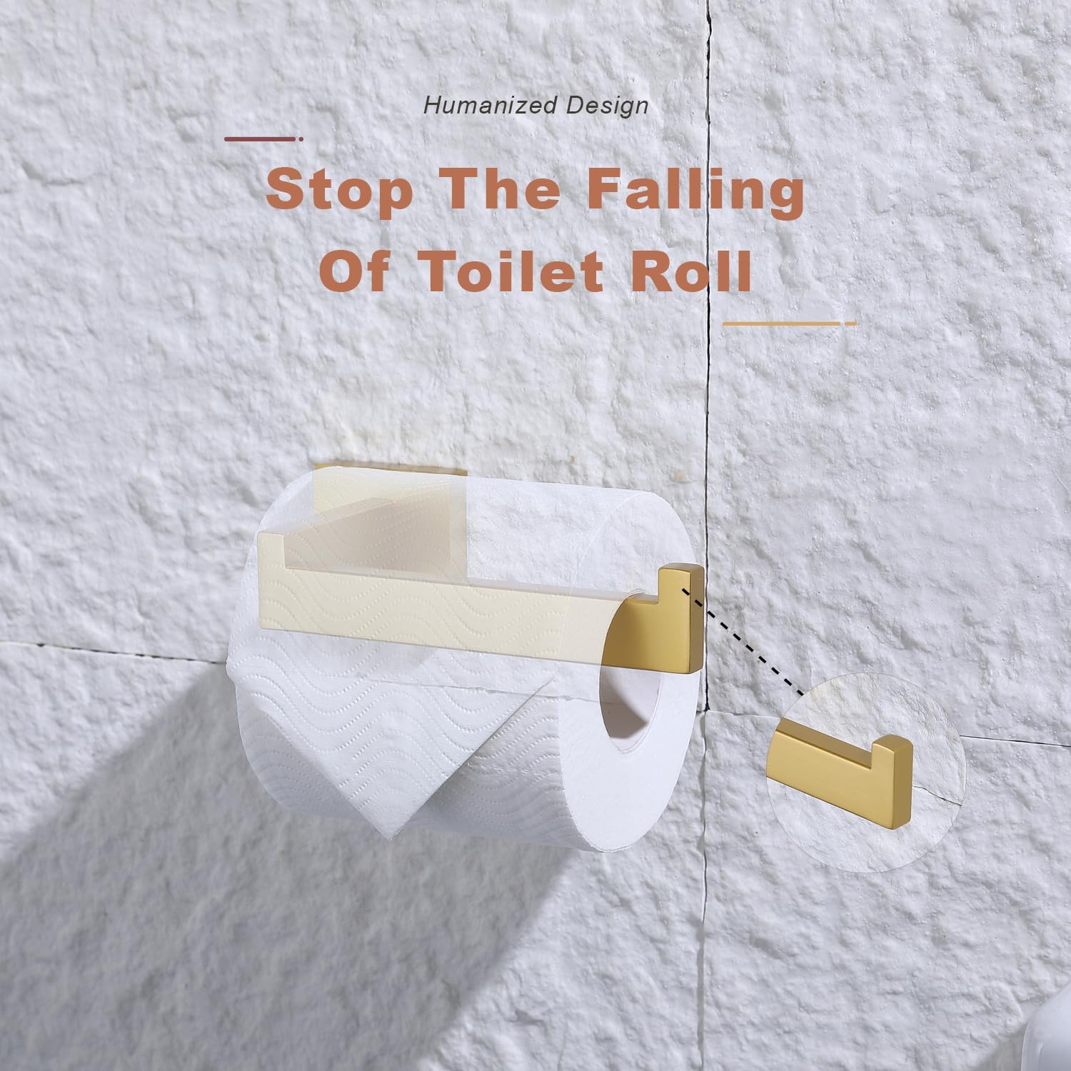 TASTOS Toilet Paper Holder Brushed Gold, Toilet Tissue Roll Holders Dispenser and Hangers Wall Mounted for Bathroom & Kitchen, Stainless Steel Modern Square Style 2 Pack
