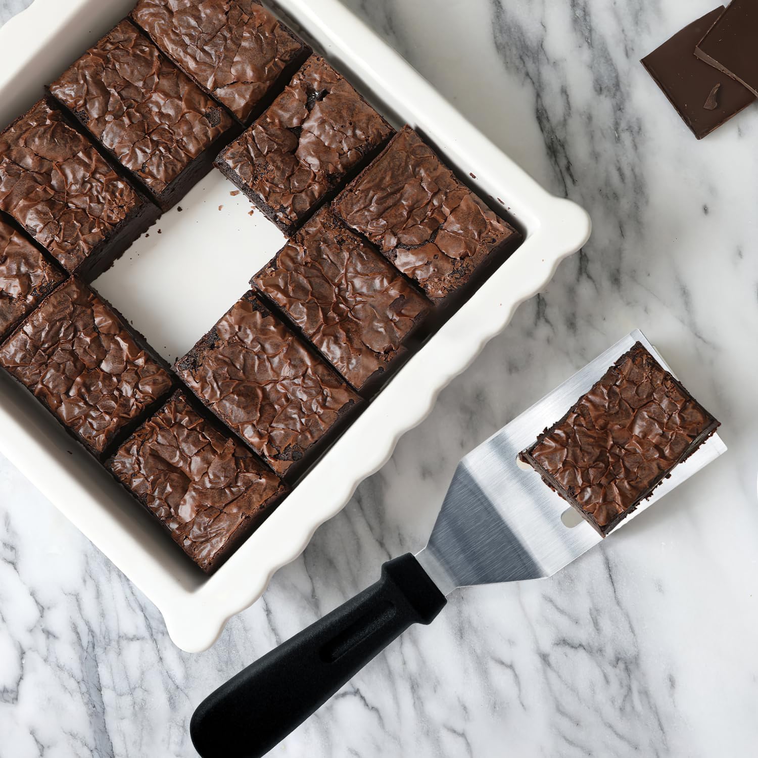 - Professional Metal Spatula: This package includes 2 metal spatulas, 1 slotted spatula 9.8 x 2.35 inches and 1 solid spatula 9.8 x 2.75 inches. These small spatulas are such a handy size. They are perfect for cutting and serving brownies, quiche, cornbread, etc. Also itβs perfect for serving anything our of a pyrex dish.