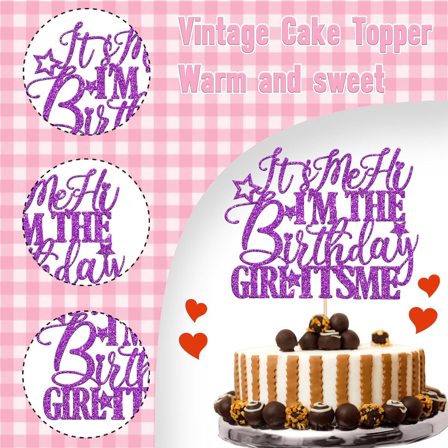1 PCS It's Me Hi I'm the Birthday Girl It's Me Cake Topper Glitter Music Singer Cake Pick for Funny Hip Hop Singer Girls Birthday Party Cake Decorations Supplies Purple