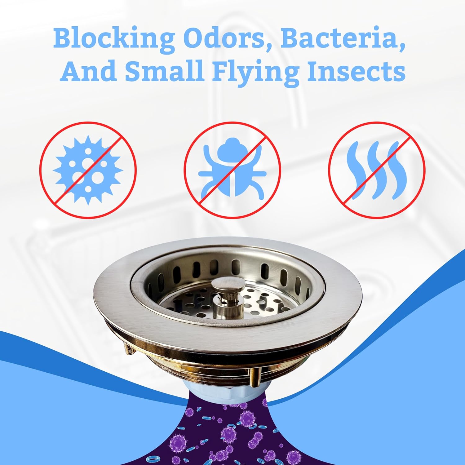 - SIZE: This kitchen sink strainer fits most standard 3-1/2 inch diameter sink opening. The rim diameter of this strainer is 4.35 inch, and height is 2.22 inch. The basket is 0.79 inch tall.