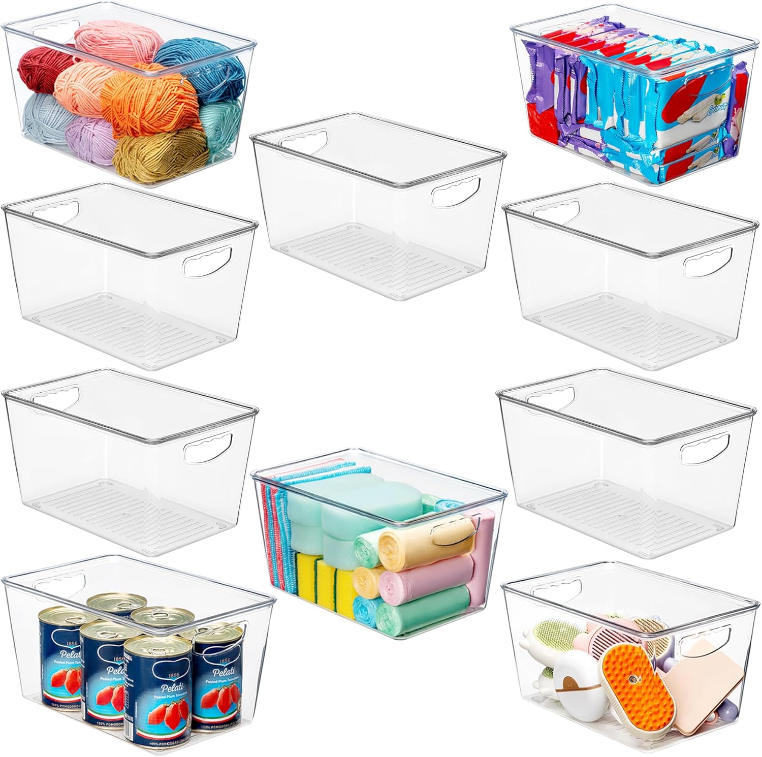 - Multi scenario and multi-purpose: This set comes with 8 pcs same size bins, freely edit your style. These are the perfect addition to your home to keep items organized and within reach, quickly being a professional Storage Master! Fit fruits/canned goods/food packet/makeup/electronic accessories/crafts/cleaning supplies. Centralized storage used in kitchen/pantry/fridge/Freezer/cabinets/shelves, choose anywhere you want to place. ORGANIZE WITH OUR VALUE SET!