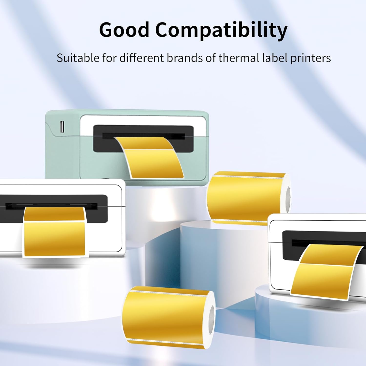 - Package: Holographic Gold Thermal Sticker Labels- 2*3 inch- 200 Labels/Roll. It’s printable with a thermal printer, No ink toner or ribbons are needed