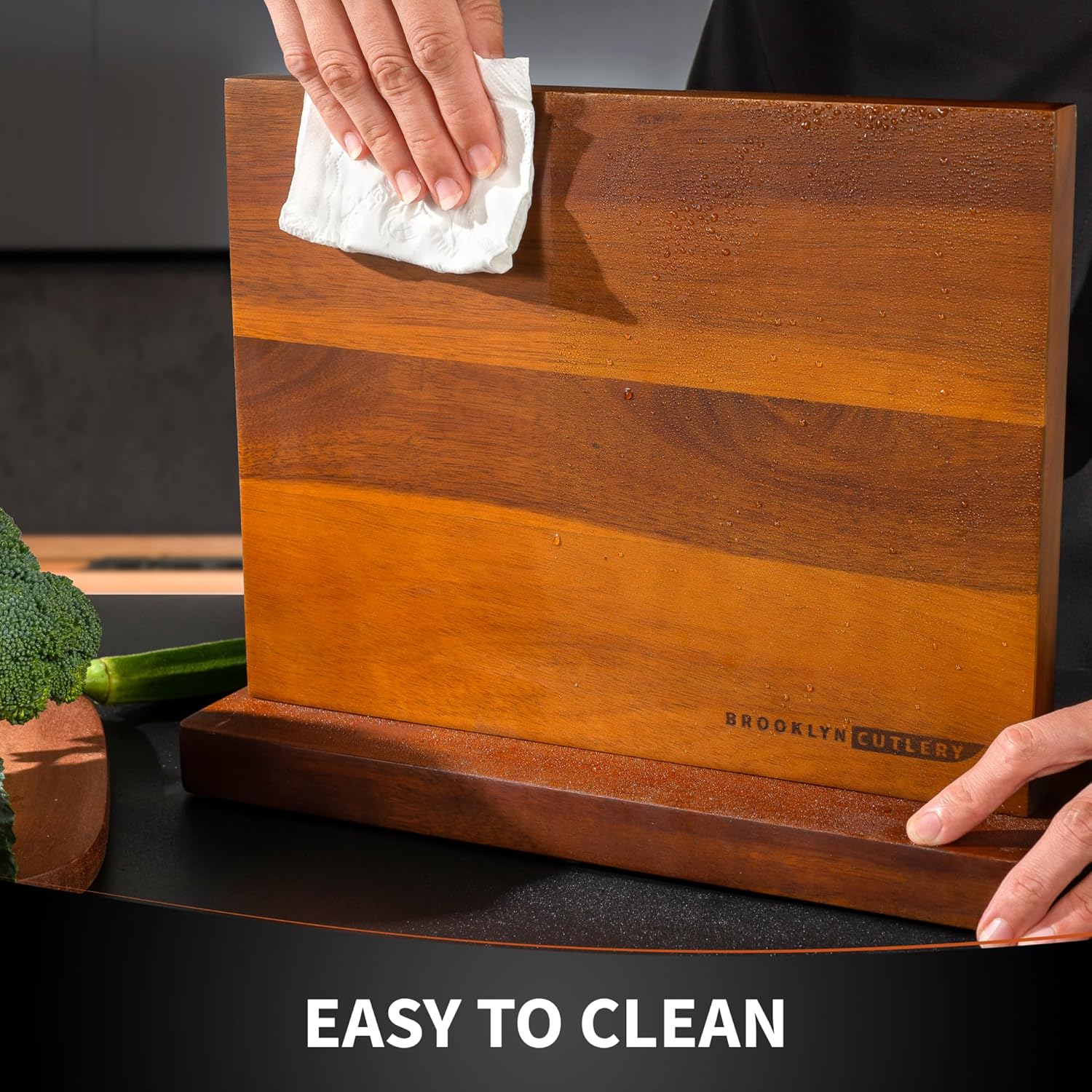 - 【SOLID ACACIA WOOD 🪵】 Crafted from premium acacia wood, this knife holder is as durable as it is beautiful. It’s the perfect addition to a sleek and modern kitchen. The natural wood grain and rich color blends style with long-lasting performance.