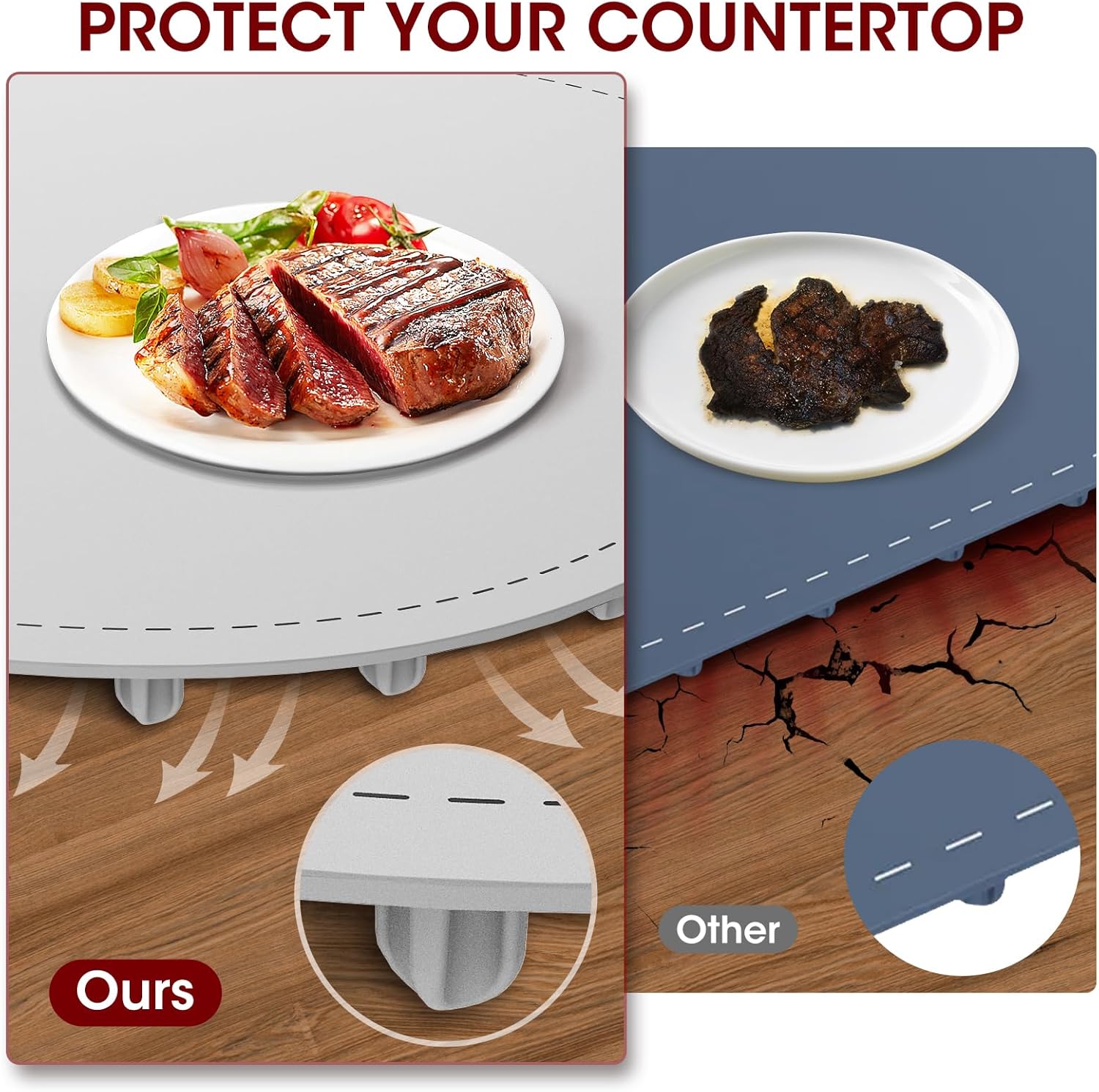 - 【Child Safety Lock and Higher Pad Feet】Food warming mat control panel has a built-in child safety lock that locks securely with a 3-second long press to protect your child's curious little hands.. Equipped with higher silicone pad feet, the warming tray enhances heat dissipation, keeping your tabletop safe from the heat damage